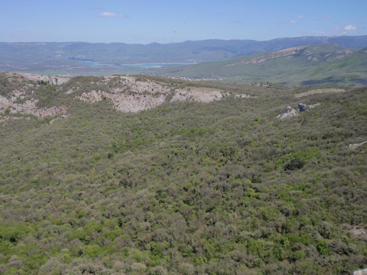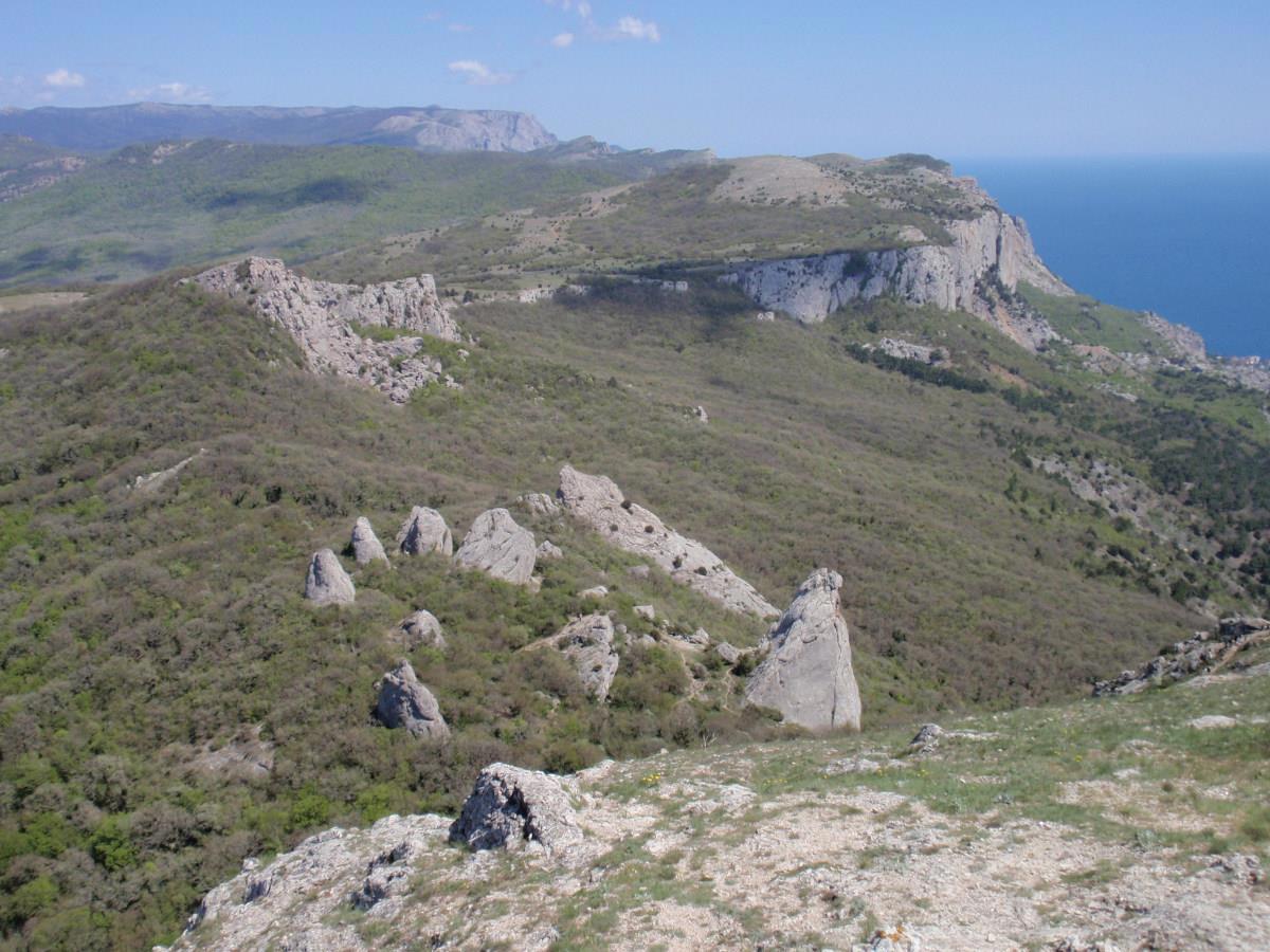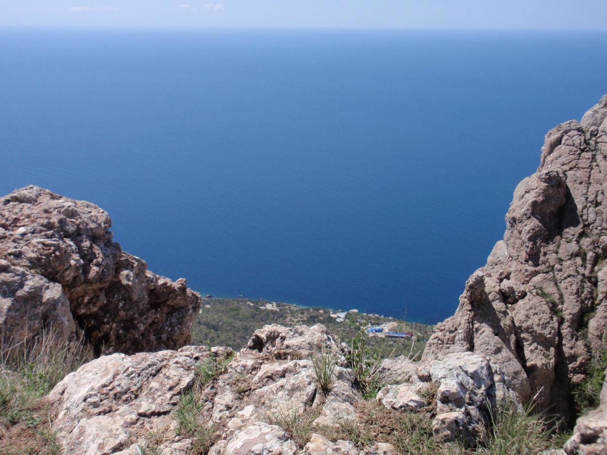 На самой вершине энтузиасты вмуровали крест, дойти до которого становится самоцелью. Мы тоже дошли, но потому, что с вершины горы открывается потрясающий вид – с одной стороны – бескрайнее Чёрное море, с другой – Байдарская долина.