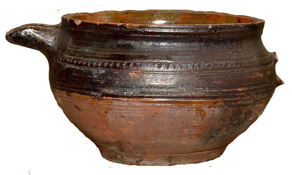 Горшок для топления масла – специализированная форма керамической посуды, имела волнистую каёмку и непосредственно ручку для снятия с печи.