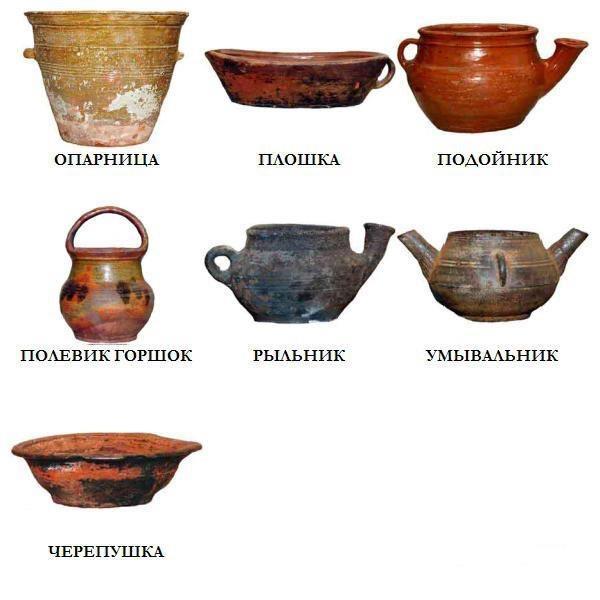 Горшки изготавливались из специальной горшечной глины, жирной, пластичной, синего, зеленого или грязно-желтого цвета, в которую добавляли кварцевый песок. После обжига в горне она приобретала красновато-коричневый, бежевый или черный цвет, в зависимости от первоначального цвета и условий обжига. Горшки редко орнаментировались, их украшением служили узкие концентрические круги или цепочка из неглубоких ямочек, треугольничков, выдавленных вокруг венчика или на плечиках сосуда. Блестящая свинцовая глазурь, придававшая привлекательный вид только что изготовленному сосуду, накладывалась на горшок с утилитарными целями – придать сосуду прочность, влагоустойчивость. Отсутствие украшений было обусловлено назначением горшка: быть всегда в печке, лишь ненадолго в будни показываться на столе во время завтрака или обеда.