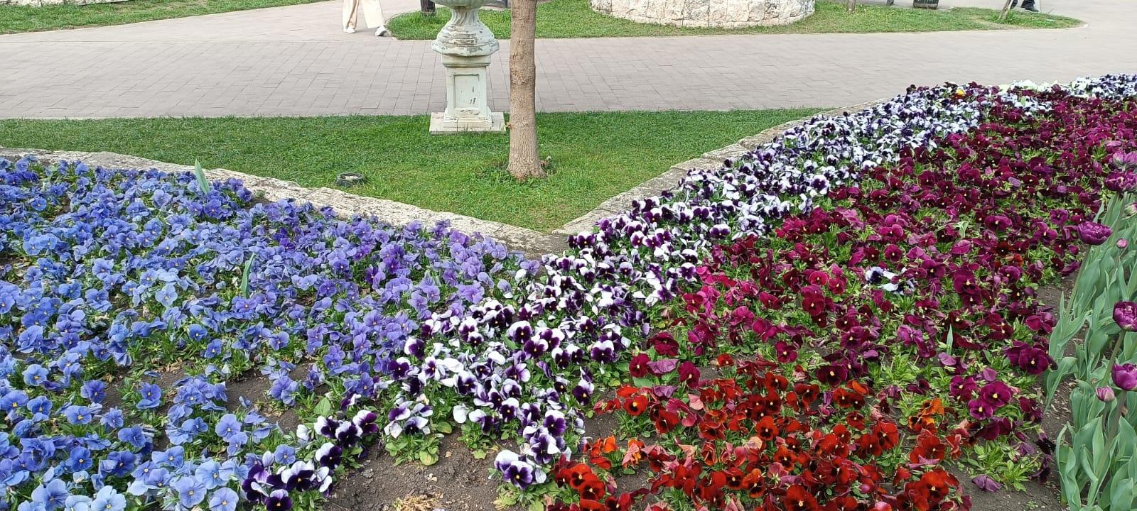 Что касается цветов, то не каждый год озеленители нас балуют цветами. Но несмотря на это в парке всегда приятно находиться! Он ландшафтный и кроме цветов там много интересного.