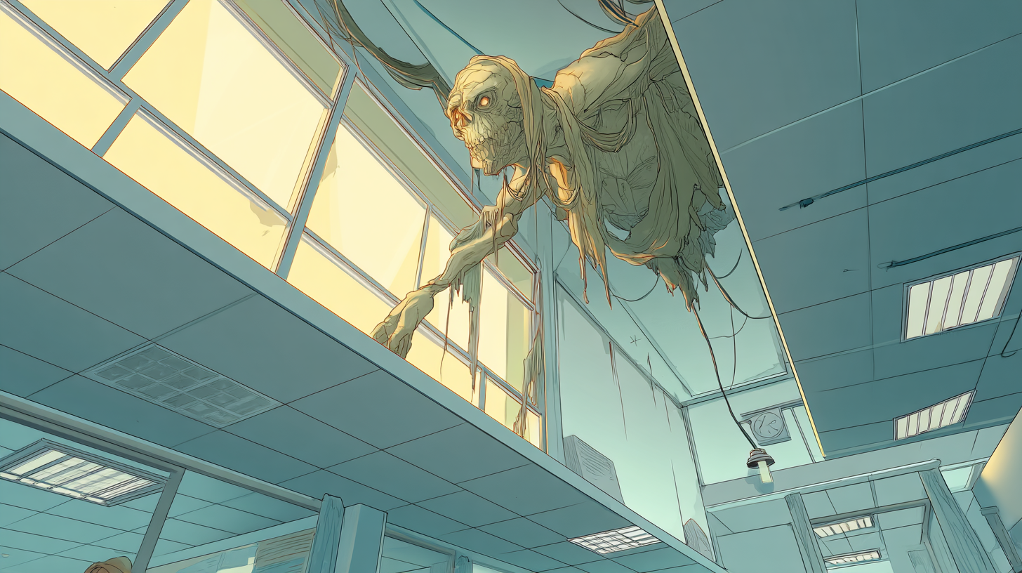 Гуаха представала жертвам в форме древней старухи с пустыми деформированными глазницами. Сухая мёртвая кожа струпьями свисала с её полуприкрытого какими-то тряпками тела. Непропорционально длинными конечностями она вцепилась в потолочные перекрытия, при этом голова была неестественным образом вывернута в сторону хозяев зала. А теперь и в мою.