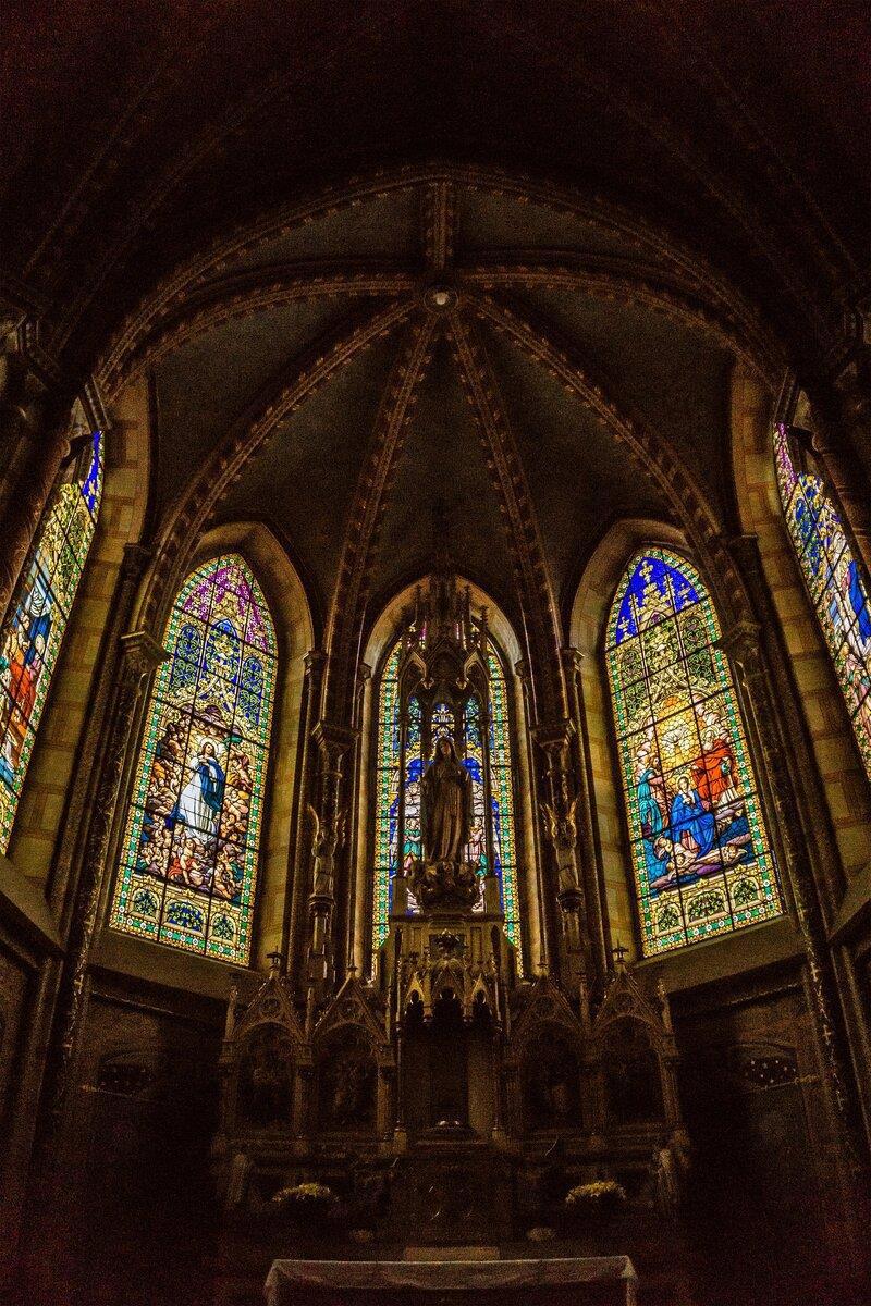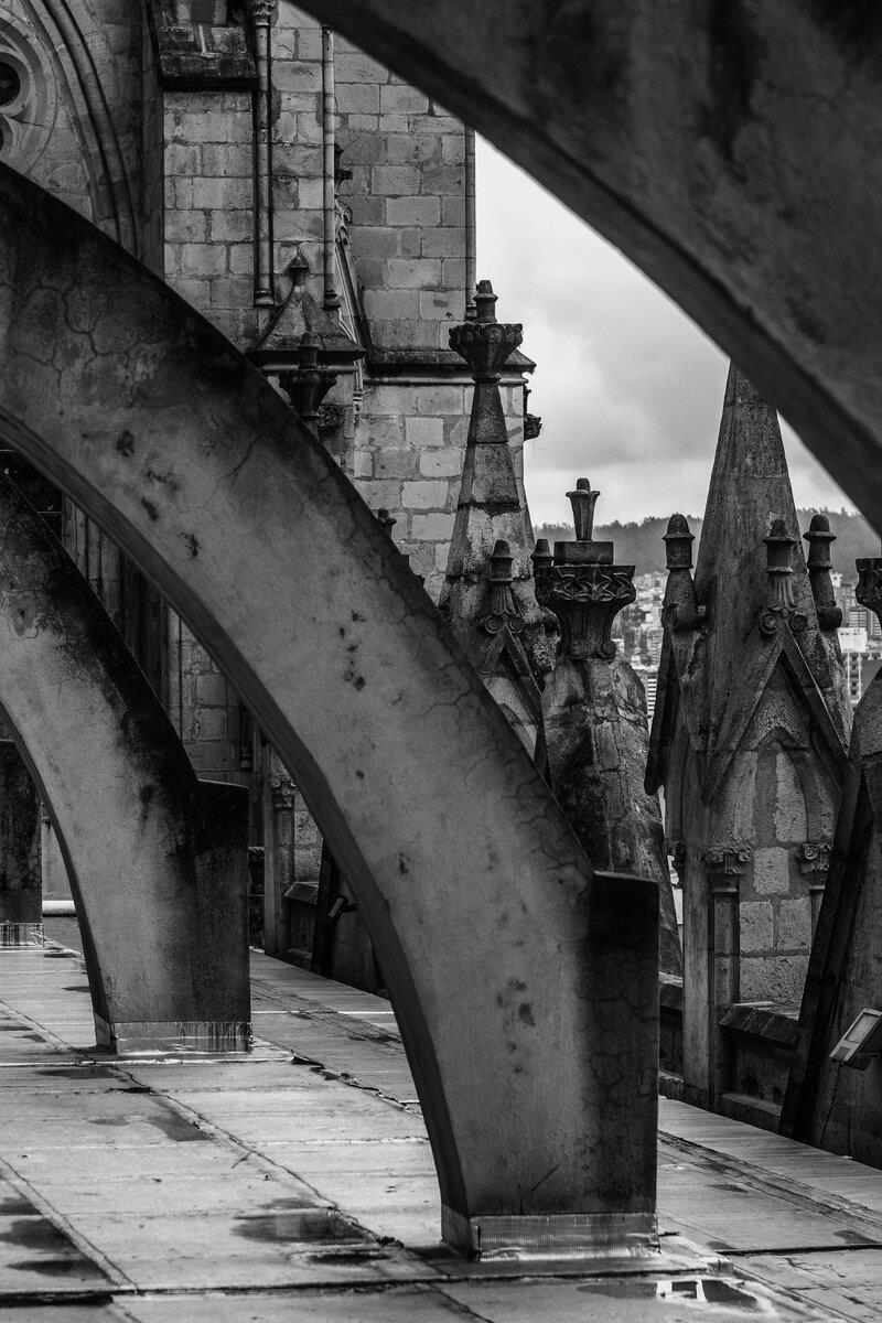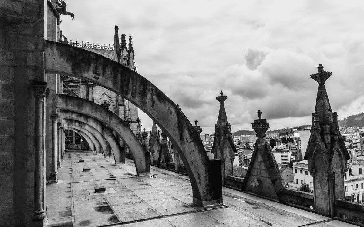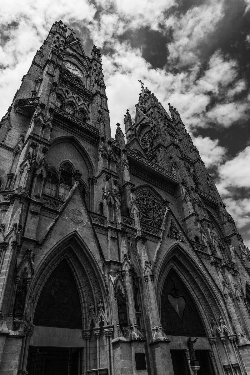 С виду базилика чем-то напоминает собор той самой Парижской Богоматери. По крайней мере, химеры и горгульи присутствуют. Только вот выполнены они в латиноамериканском стиле, то есть в виде животных, населяющих Эквадор. Но если быть совсем честными, то Тарлье вообще-то вдохновлялся другим французским собором — Буржским кафедральным. Погуглите на досуге, весьма и весьма близки внешне.