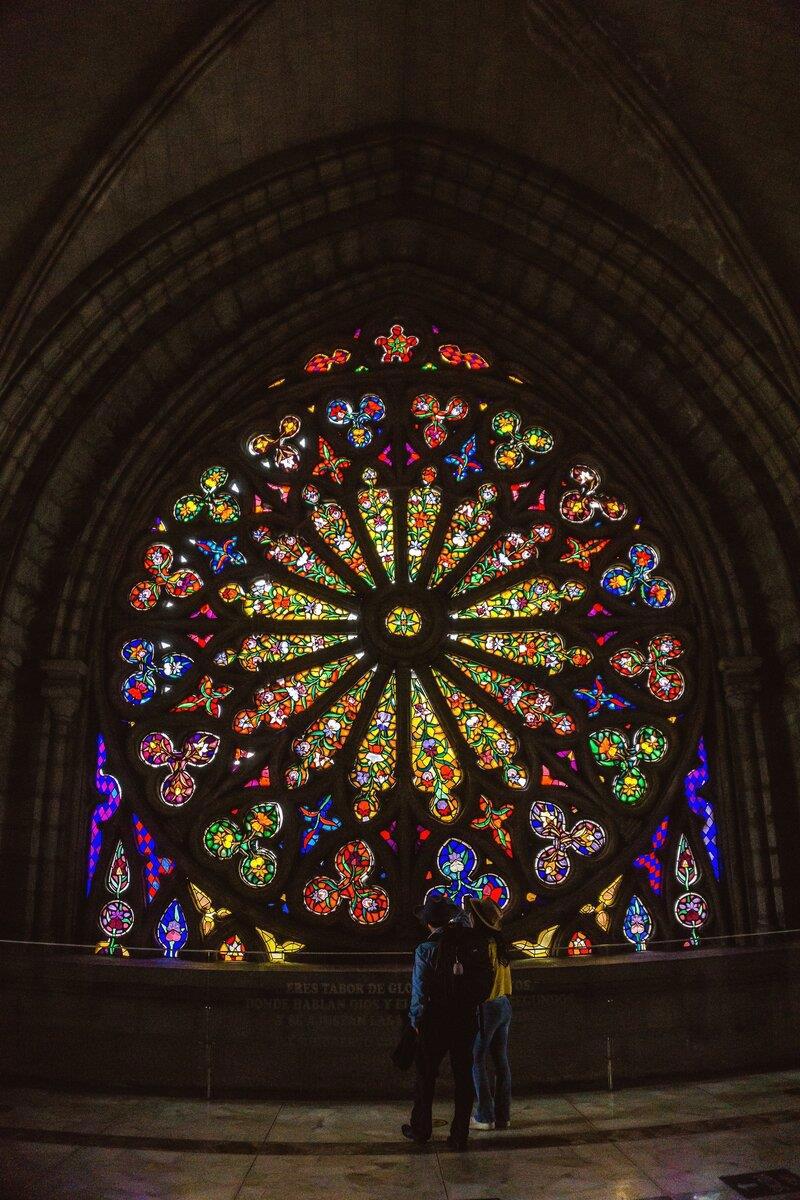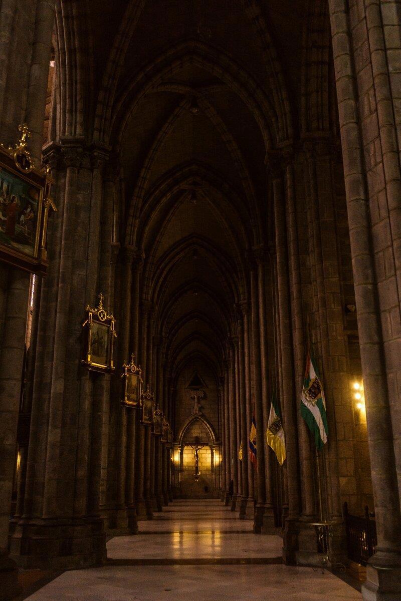 Итого: в Basílica del Voto Nacional стоит посчитать химер и горгулий, витражи и высоченные колонны, посмотреть на захоронения местных знаменитостей, подняться в часовую башню, выйти на крышу, если будет дозволено, и пофоткаться на фоне огромного цветного окна. Готовьте к подъёму ноги и ягодички, потому что лифт там работает очень мэээтлееееннаааа и печааааальнааааа.