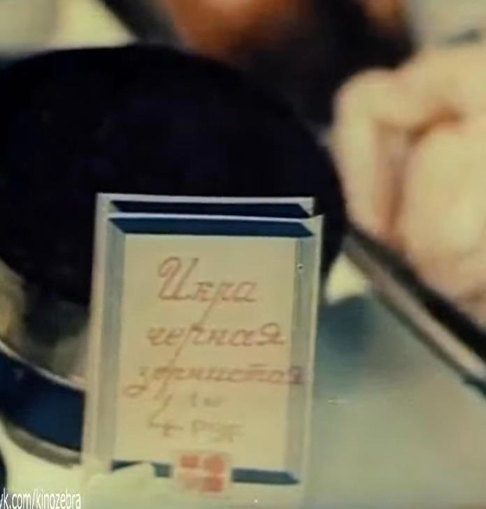 Прошу прощения вырезано из фильме потому такое качество картинки. Там была цена 40р и после денежной реформы стала 4р. Сейчас встретить черную икру дабы ее продавали по 1кг и выше невозможно, если только какой олигарх может позволить себе такие покупки. Потому когда говорят начинающий молодой специалист после ВУЗ(а) получал всего 120 рублей оклада, без учета премий и переработок, то легко перевести на современный нам рубль.