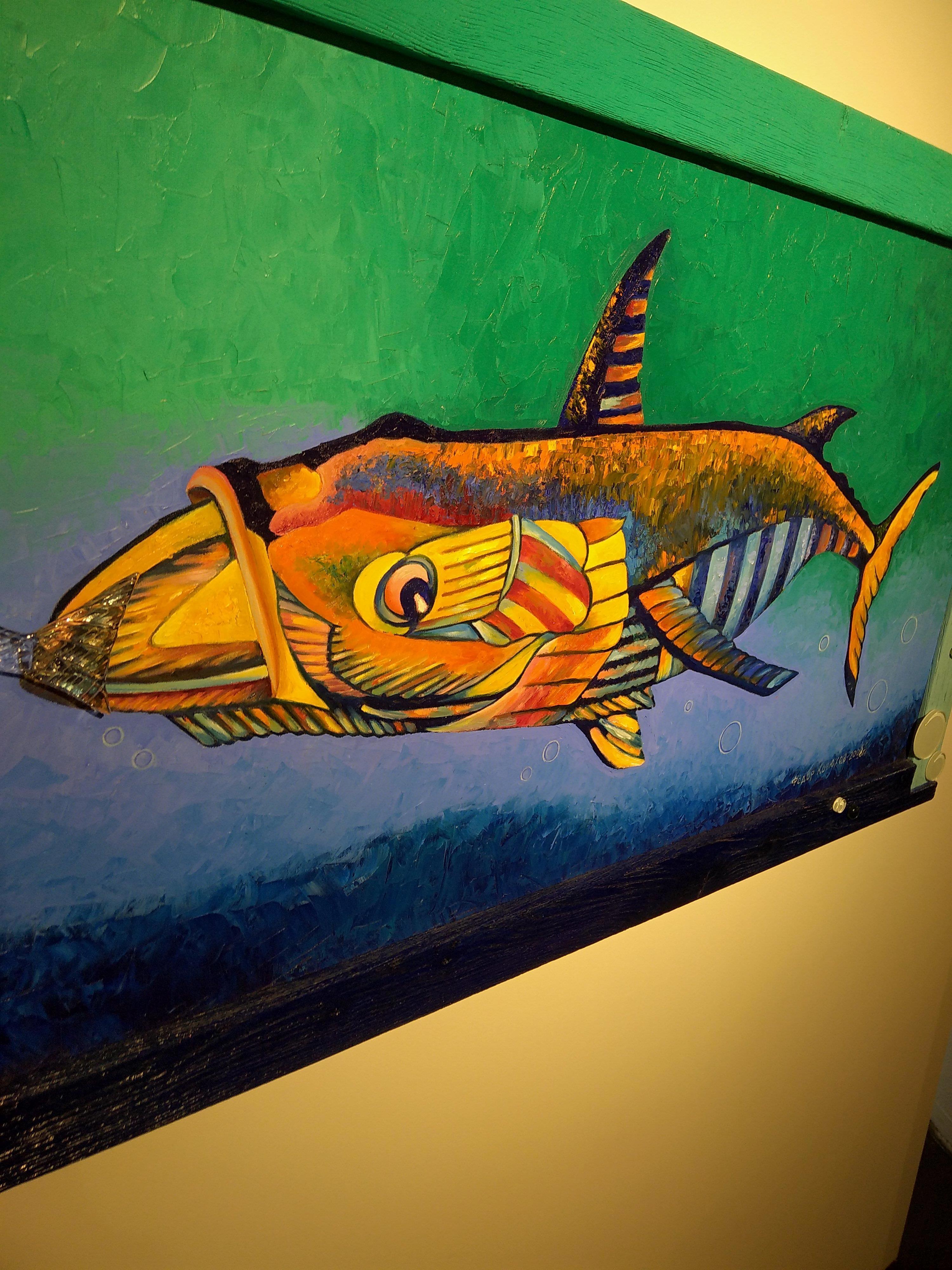 Автор: Виталий ШавинДобрый день товарищи! Десять минут назад я вышел из зала, где выставляется известный и многоуважаемый путешественник, а теперь и художник Фёдор Конюхов. К сожалению...выставка небольшая, но картины интересны, хотя и своеобразны, больше всего мне понравилась работа на которой был изображён ангел в одеянии чукчи и в лыжах, смотрящий в замёрзшую лужу под пристальным и буравящим его висок, взором спасителя. И луна красивая.... А так...ну...человек который преодолевает себя в экстремальных условиях, да ещё и полностью на едине с собой...в его голове не могло не появиться вопросов, размышлений и тараканов. Иначе можно с ума сойти. Его тараканы интересны и изображены в масле на холсте... Честь и хвала, я так не могу. На самом деле - великий человек, а оценивать картины...каждому свое, ах да, есть ещё и размышления, которые он присовокупил к каждой картине. Правда интересно, прочитать отрывок его выслей, когда он в одиночестве боролся со стихией, упрямо двигая вёслами...наблюдая за красной чайкой. Круто. Жаль, что мало.