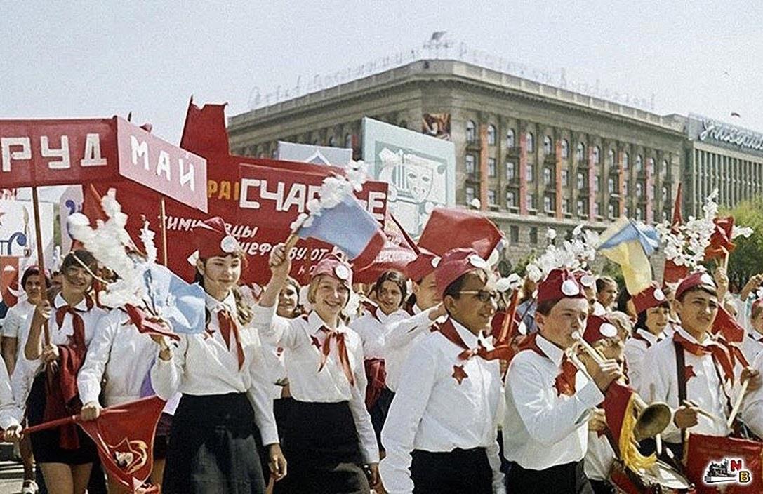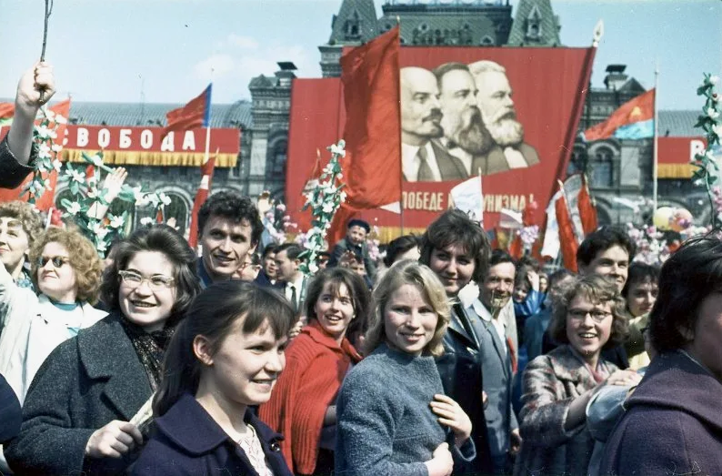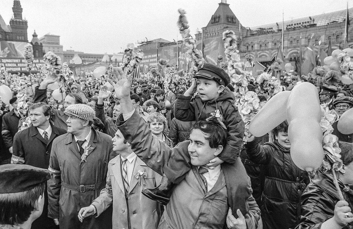 Архивные фото с первомайских демонстраций позволяют мысленно перенестись в те былые ностальгические времена... помню мы всем классом любили ходить на демонстрации, а потом однажды пришли ко мне домой и продолжили играть в "маёвку", я встала на стол и вела репортаж в советских традициях: "На площадь выходят стройные ряды советских учащихся!!! Уррааа, товарищи!!!"