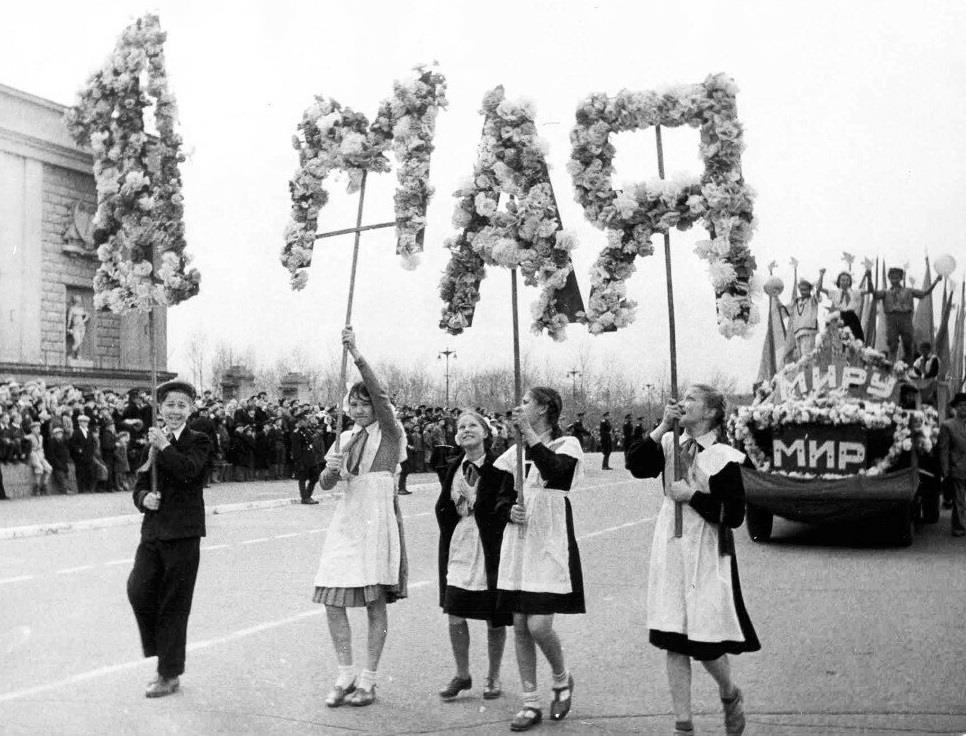 Ностальгические архивные фото первомайских демонстраций, поздравление, перевод моего весеннего стиха
