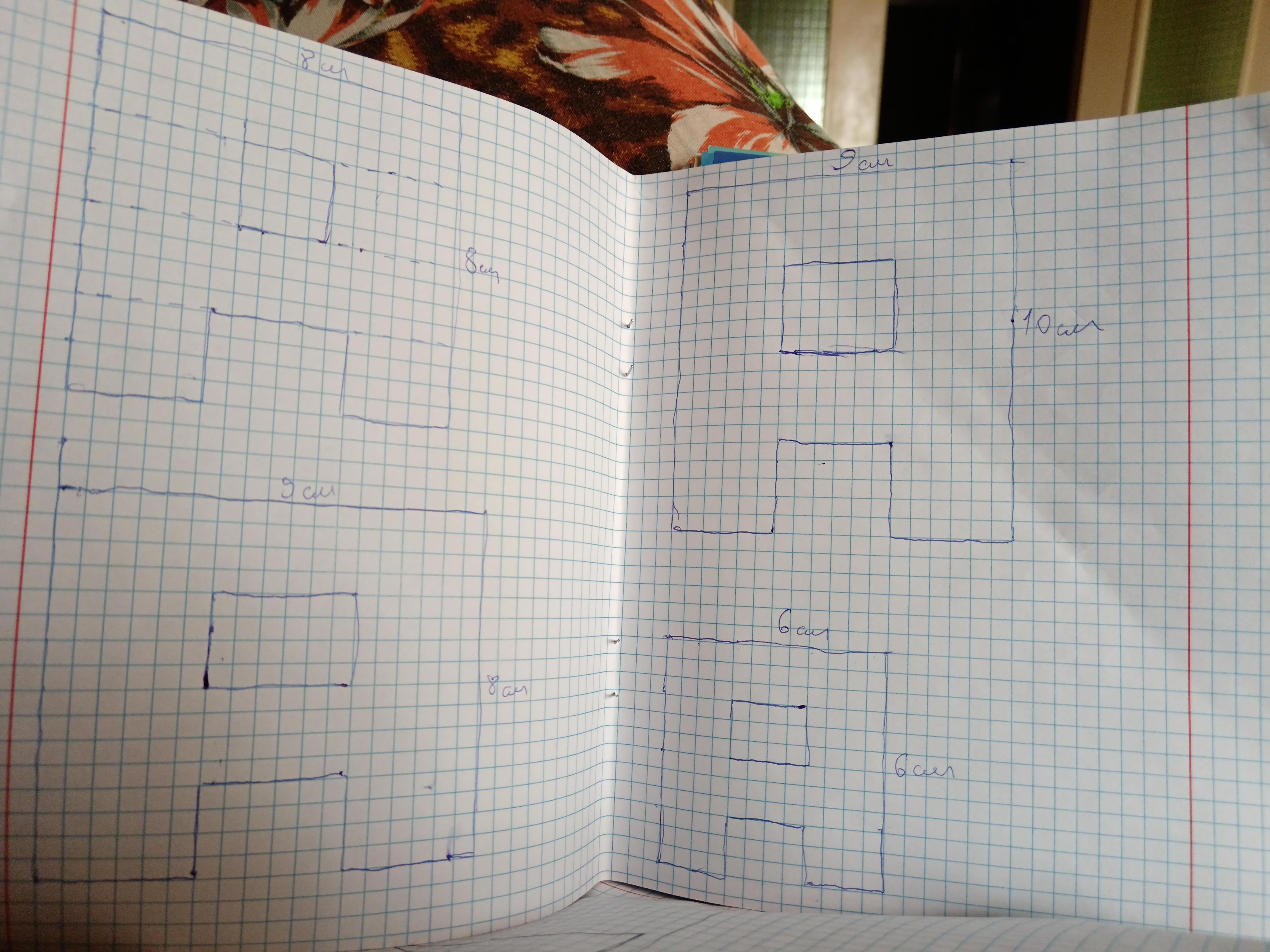 Ещё раз. Дна три уровня. Первый из двух стёкл, второй и третий по четыре - снова 10? Да! Боковых стенок 8 плоскостей, как бы тор, бублик? Если их просто сощитать. Эскизов, моделей я наделал из разных материалов уже кучу... То внешних 4 стенки - это если форму буквы делать сплошной. А вырезать в стекле отверстие не так просто. А внутренние 4 стенки пересекаются, соприкасются как перпендикулярно только точках посередине.