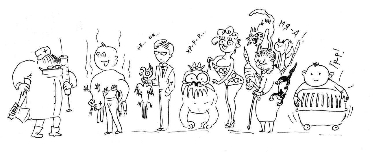 — ВАС я колоть не буду. Вакцина никак не делится. Штраф за непривитую собаку — пятьдесят тысяч крон, в случае если вас поймает ветеринарный комиссар. Поэтому берите собаку, её документы какие есть и приходите в рабочий день.