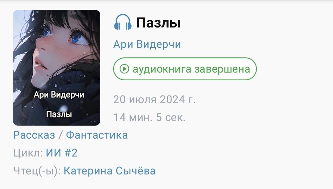 В этот раз я поделюсь впечатлениями сразу о двух частях цикла «ИИ». Почему так? Да всё просто: на самом деле это один рассказ, а его второй вариант озвучен Екатериной Сычёвой.