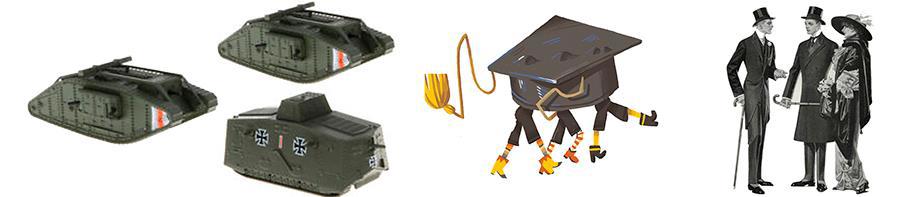 Одна из учебных групп "Альма Матер Генриха V", была в минорном настроении. Заведующий кафедрой Древней Истории, профессор Паркер, сделал студентам "подарок". Группе С-3 он целиком не засчитал рефераты по битве при Камбре 1917 года. Президент Курса, Джеймс Элджерон младший, третий виконт Монморанси, был фанатом танковых войск времен Первой Мировой войны и естественно в организованном им "Историческом Танковом кружке", состояла вся его группа и даже студенты младших курсов. Его однокурсники, которые придерживались его взглядов, в рефератах указали на большую и даже решающую роль танков, при Камбре, а один вообще допустил нетактичность, сравнив героизм британских танкистов, с героизмом солдат Русского корпуса во Франции, что было просто недопустимым в подобном учебном заведении. Так что виконт и его адепты, обозначив на свою голову, в рефератах, главенствующую роль танков, в успехе у войск Антанты, получили по полной. (Надо сказать, что не британские источники не считали эту битву Британской победой. Британцы не смогли развить успех. Нет, это было действительно крупнейшее танковое сражение Первой Мировой, аж 476 танков пошли в атаку, правда 179 танков германцы подбили, применив мобильные арт-установки на тяжелых грузовиках, и самолеты-корректировщики с фосфорными бомбами, несколько танков немцы захватили, а 200 просто сломались, короче уцелело только 73 танка, а закрепить успех, как уже было сказано выше, британцы не смогли.)