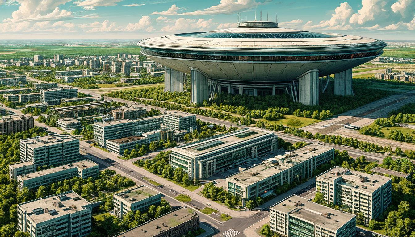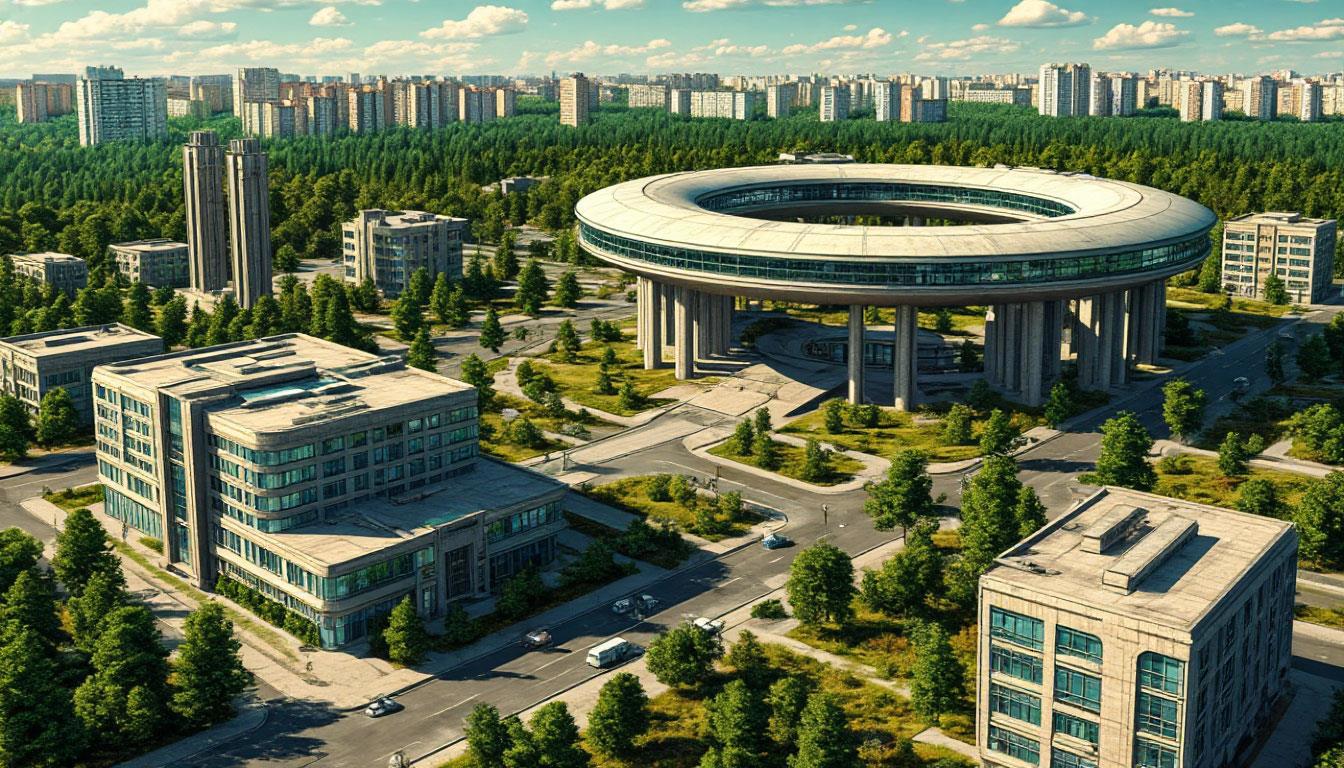 А на самом деле - попытка изобразить батутодром и Центр Подготовки в подмосковном Королёве из моего текущего цикла.