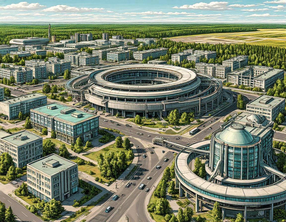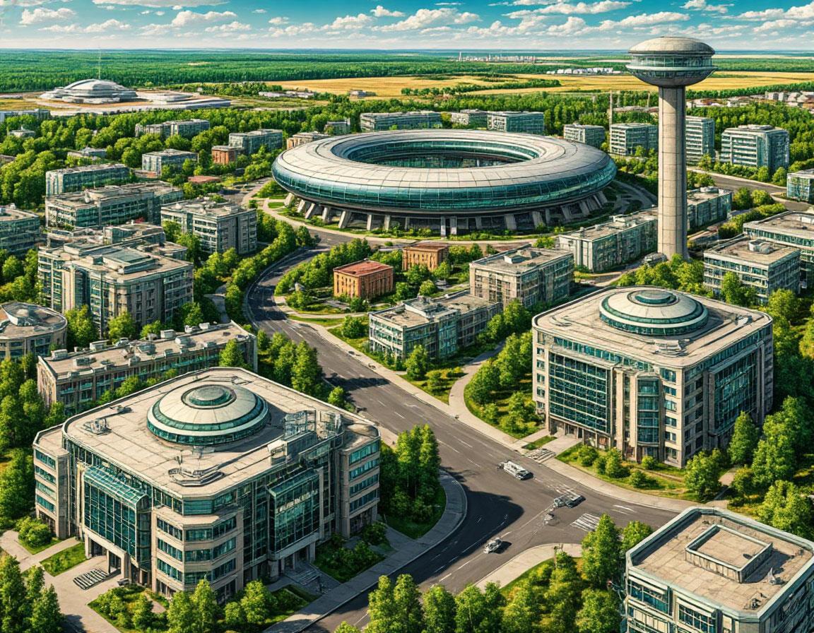 Автор: Борис БатыршинА на самом деле - попытка изобразить батутодром и Центр Подготовки в подмосковном Королёве из моего текущего цикла.