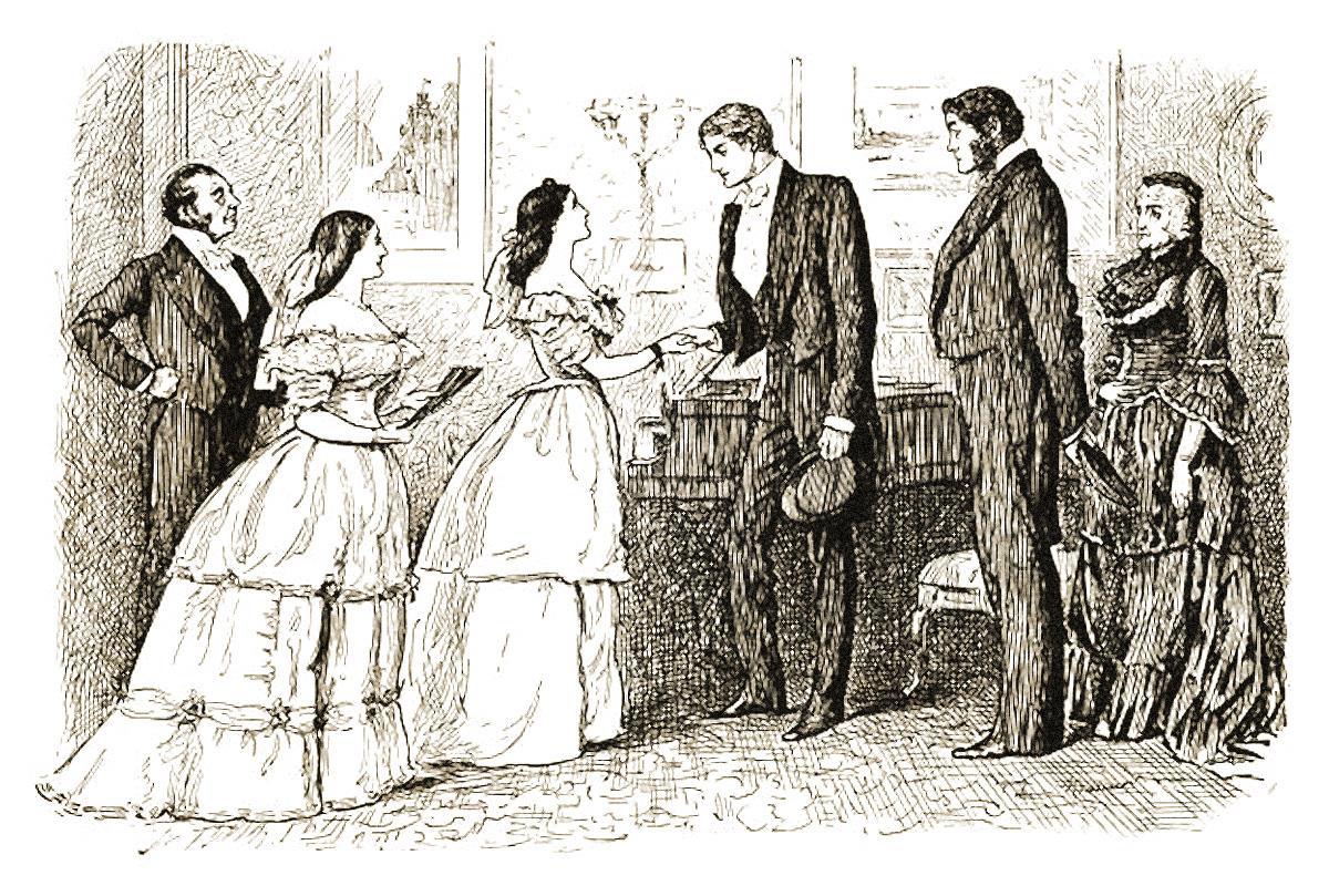 У мужчин тоже были свои правила в подборе гардероба. Отправляясь в гости, дворянин непременно надевал пальто или альмавиву — длинный свободный плащ, одна из пол которого накидывалась на плечо. На званый вечер он надевал фрак, в остальных случаях — сюртук в полоску или клетку.
