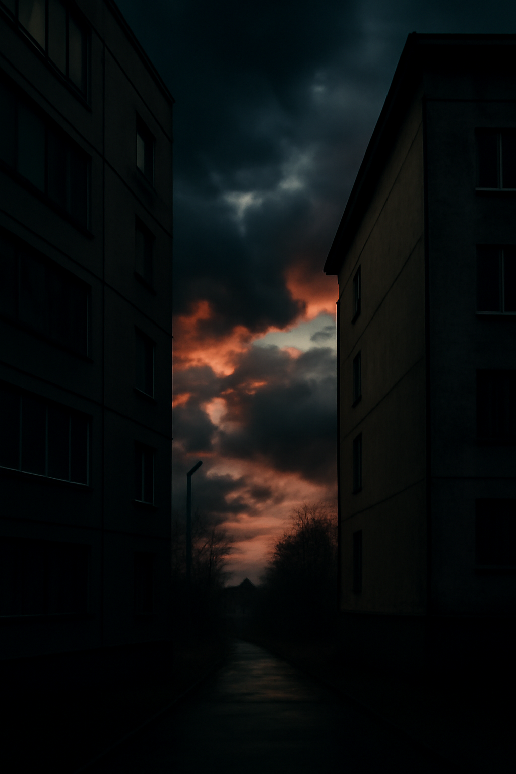 Участок между двумя домами: один — фасадом, другой — торцом. И между ними вдруг открывался кусочек неба.