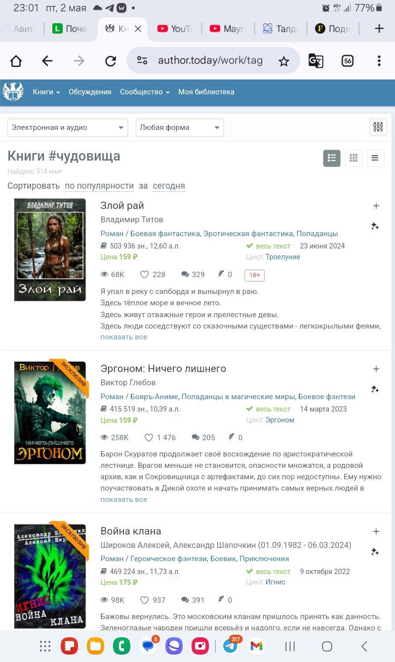 Так вот: этот роман сейчас лидирует среди произведений, отмеченных тэгом "чудовища".