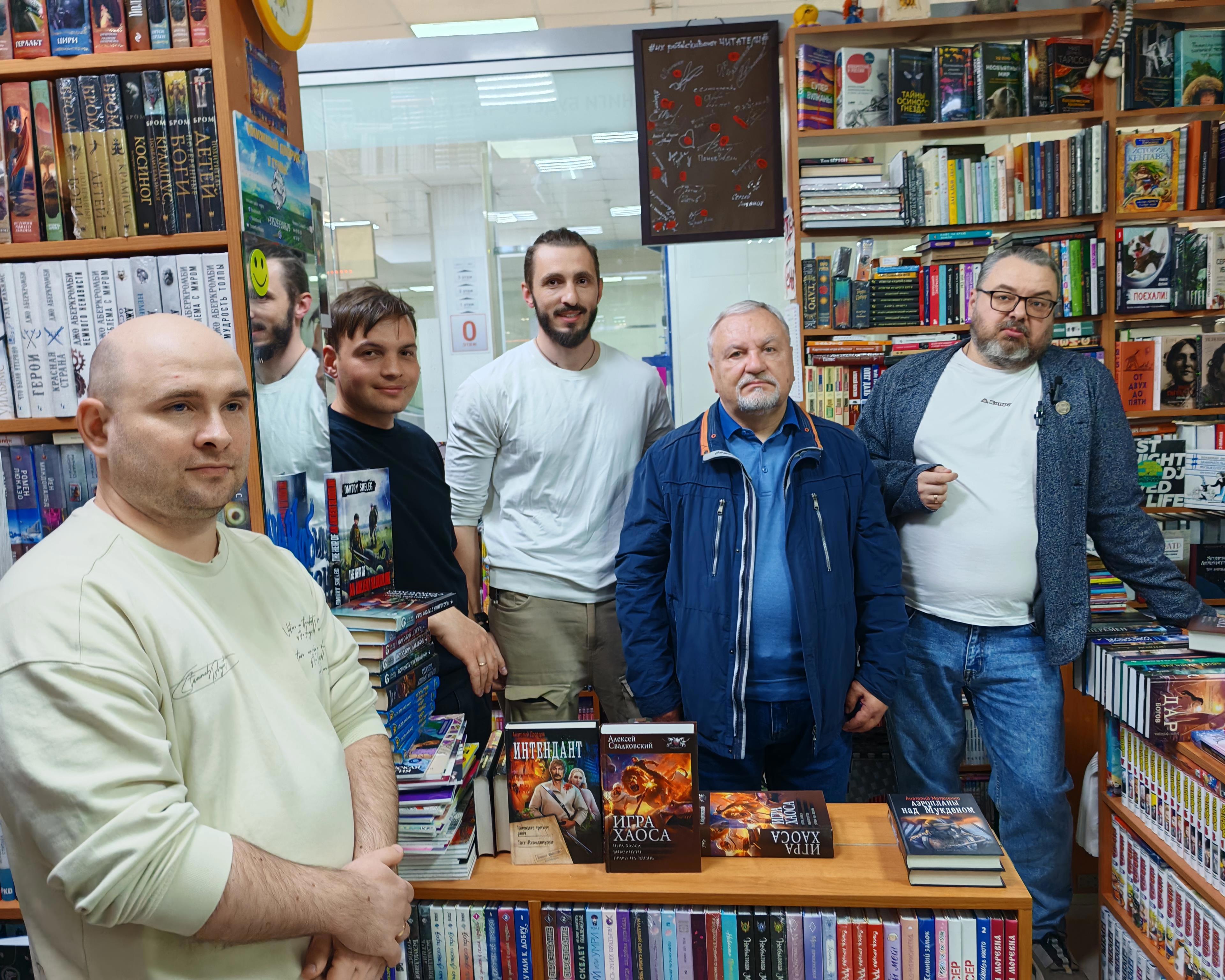 Автор: Анатолий ДроздовИтак, анонсированная в прошлом блоге встреча формата читатель-писатель в магазине "Книжный дворик" по адресу ул. Немига, 3 в Минске состоялась. Пришло 7 (!) писателей-фантастов, авторов АТ, и чуть большое число читателей. Пара часов активного общения с читателями, автограф-сессии, а потом писатели перешли в заведение с названием "Гамбринус", где активно пообщались на тему дружбы и активного сотрудничества.