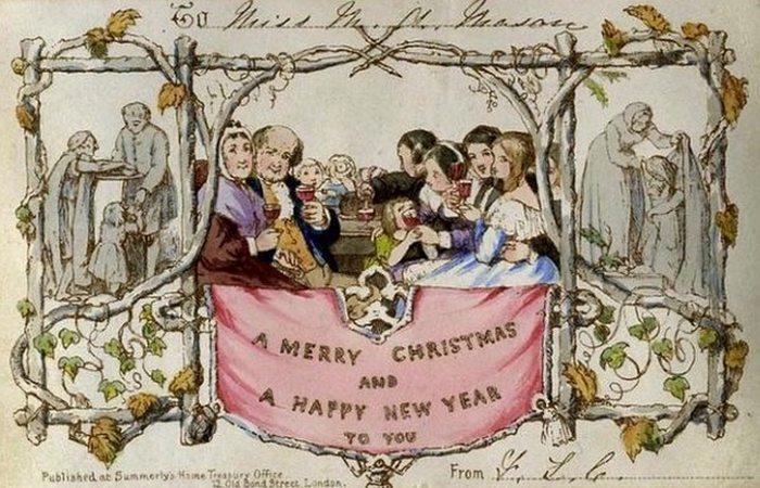 Автор: Денис ВласовПервую коммерческую рождественскую открытку выпустил сэр Генри Коул в Англии в 1843г. В центре открытки была изображена семья, поднимающая тост по случаю праздника, а по боками представлены сценки благотворительности. Открытку выполнили в виде триптиха. Она также содержала надпись: "A Merry Christmas and a Happy New Year to You", в верхней ее части указывали имя получателя, а в нижней имя отправителя. Общий тираж составил 1000 экземпляров.
