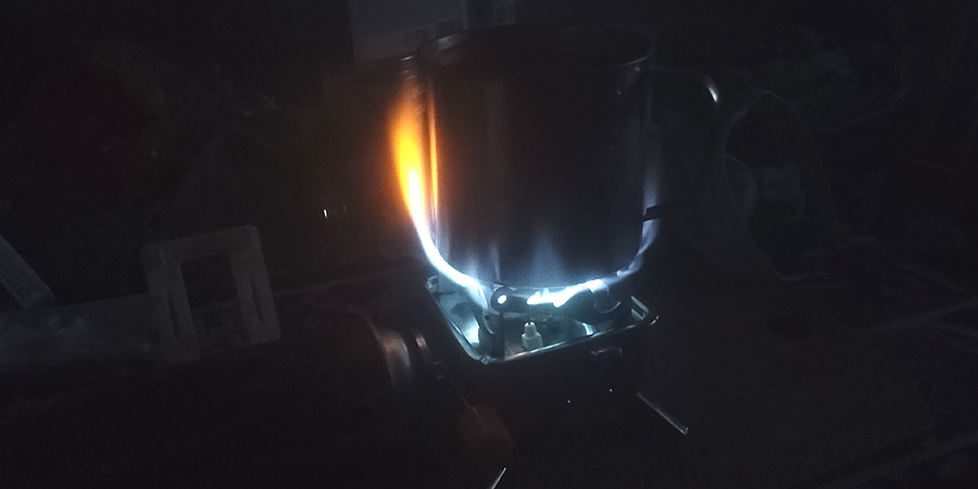 Запускать походную горелку на бензине было откровенно лениво. Так что обходился чаем на газовой горелке с баллончиками и едой не требующей готовки.