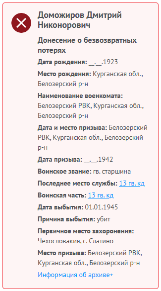 Эту информацию я решил уточнить на портале "Память народа". По младшему брату - Дмитрию Никаноровичу сведения нашел сразу, ещё в 2014-м году.