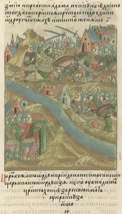 Ведомо да есть: кто намъ был недругъ, что стал на моемъ царствѣ копытом, и яз на его царствѣ стал всѣми четырми копыты; того Богъ убил своим копьем, дѣти ся того по Ордамъ розбежали; четыре карачи в Крыму ся от меня отсѣдили. А вам ся есмя государи учинили от Саина царя сабелным концемъ. И ты бы мою подать въ 40 день собралъ: 60 тысяч алтын вешнюю, да 60 тысяч алтын осенную, а на себѣ бы еси носил Ботыево знамение, у колпока верхъ вогнув ходил, зане ж вы плужные просяники. Толко моея подати в 40 день не зберешь, а на себѣ не учнешь Ботыево знамения носити, точен тобою в головах и всѣх твоих бояр з густыми волосы и с великими бородами у мене будутъ; или паки мои дворяне со гзовыми сагадаками и з сафьянъными сапоги у тебя будутъ. А крепкия по лесомъ пути твои есмя видѣли и водския броды есмя сметали. Меж яз дорог один город наѣхалъ, тому ся так и стало. А Даньяра бы еси царевичя оттоле свелъ, а толко не сведешь, и яз, его ищучи, и тебя найду. А нынѣча есми от берега пошел, потому что у меня люди без одежь, а кони без попонъ. А минетъ сердце зимы девяносто дней, и яз опять на тобя буду, а пита та у меня вода мутная.