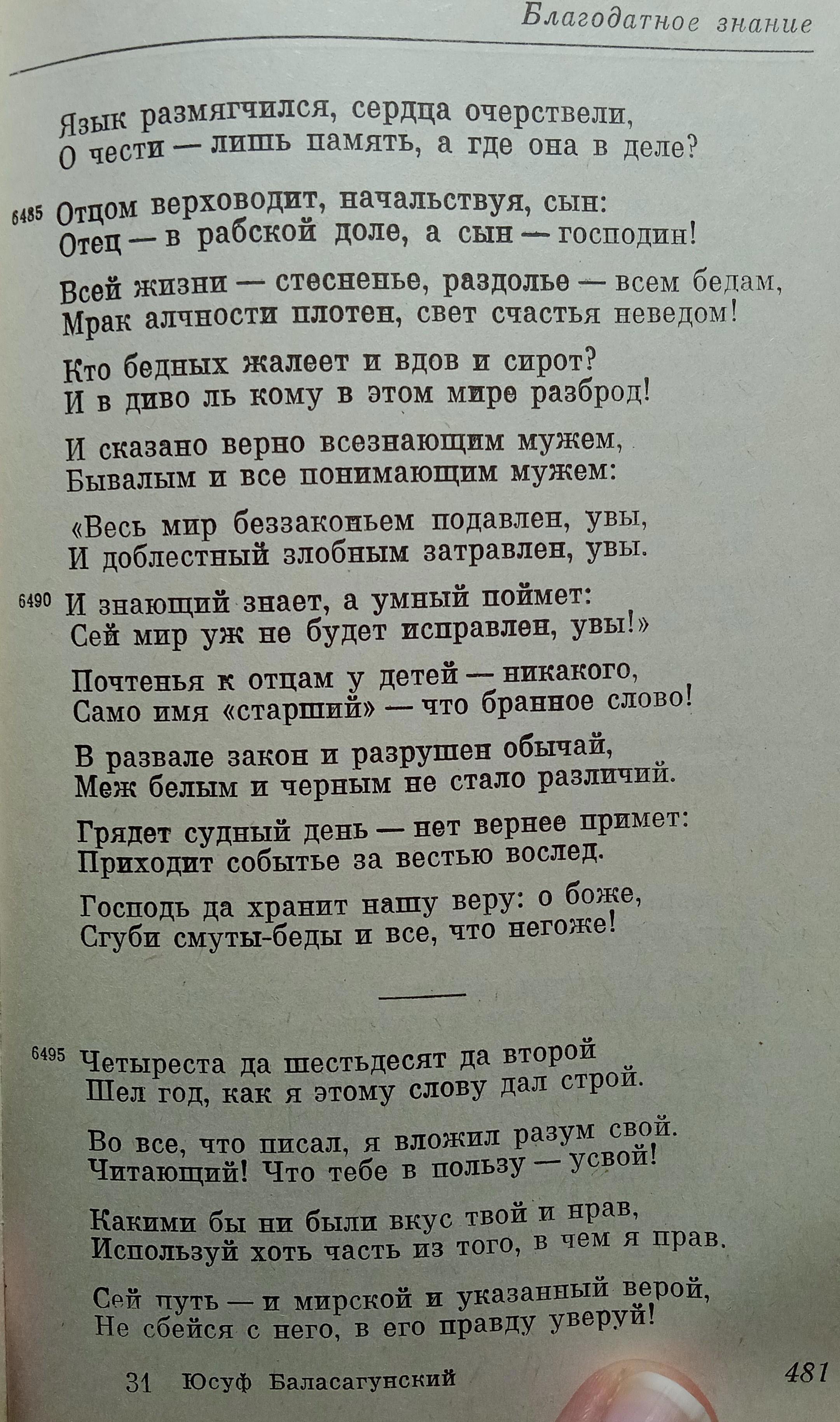 Юсуф Баласагунский из Караханидской державы одиннадцатого века подтверждает, что уже в его времена раньше было лучше.