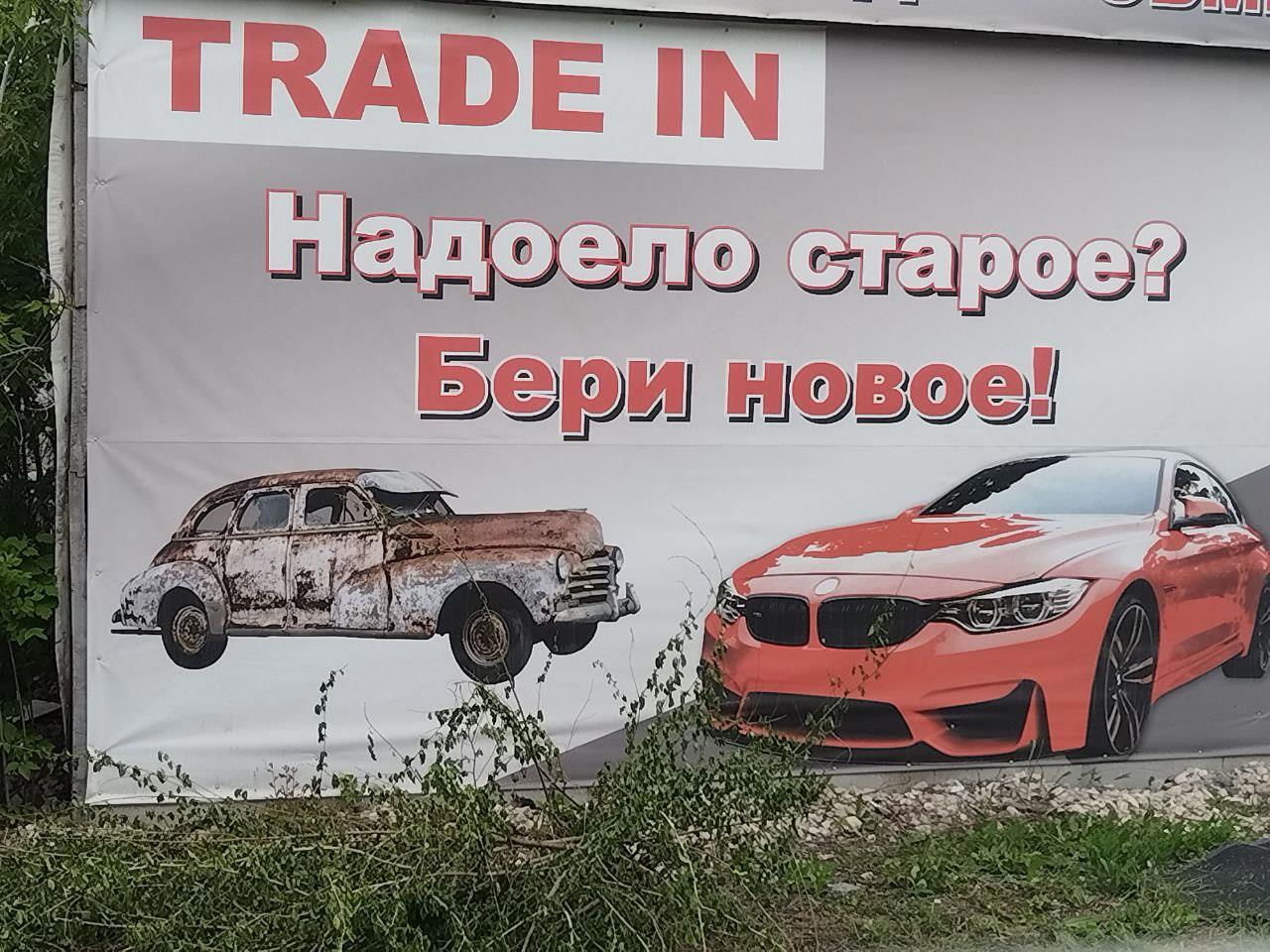 Ржавая «Победа» и новенький BMW. Не «Москвич», не «Запорожец» (согласитесь, это было бы значительно веселее), не «ГАЗ-21» или «копейка», а именно «Победа». Понимаете? «Победа»! И вместо нее предлагают новенький немецкий спорткар. Новенький. Немецкий. Спорткар. Причем красного цвета. А знамя у НИХ, если кто не помнит, тоже ведь было красным. Уловили? Лично я - уловил... Может, я просто люблю улавливать? Но мне кажется, что в данном случае Винни-Пух прав и это «ж-ж-ж-ж-ж» точно неспроста надизайнено. И скреативлено кем-то оч. непатриотичным. Вот только люди ходят мимо, а место оч. оживленное, и ничего не замечают. Или делают вид?..