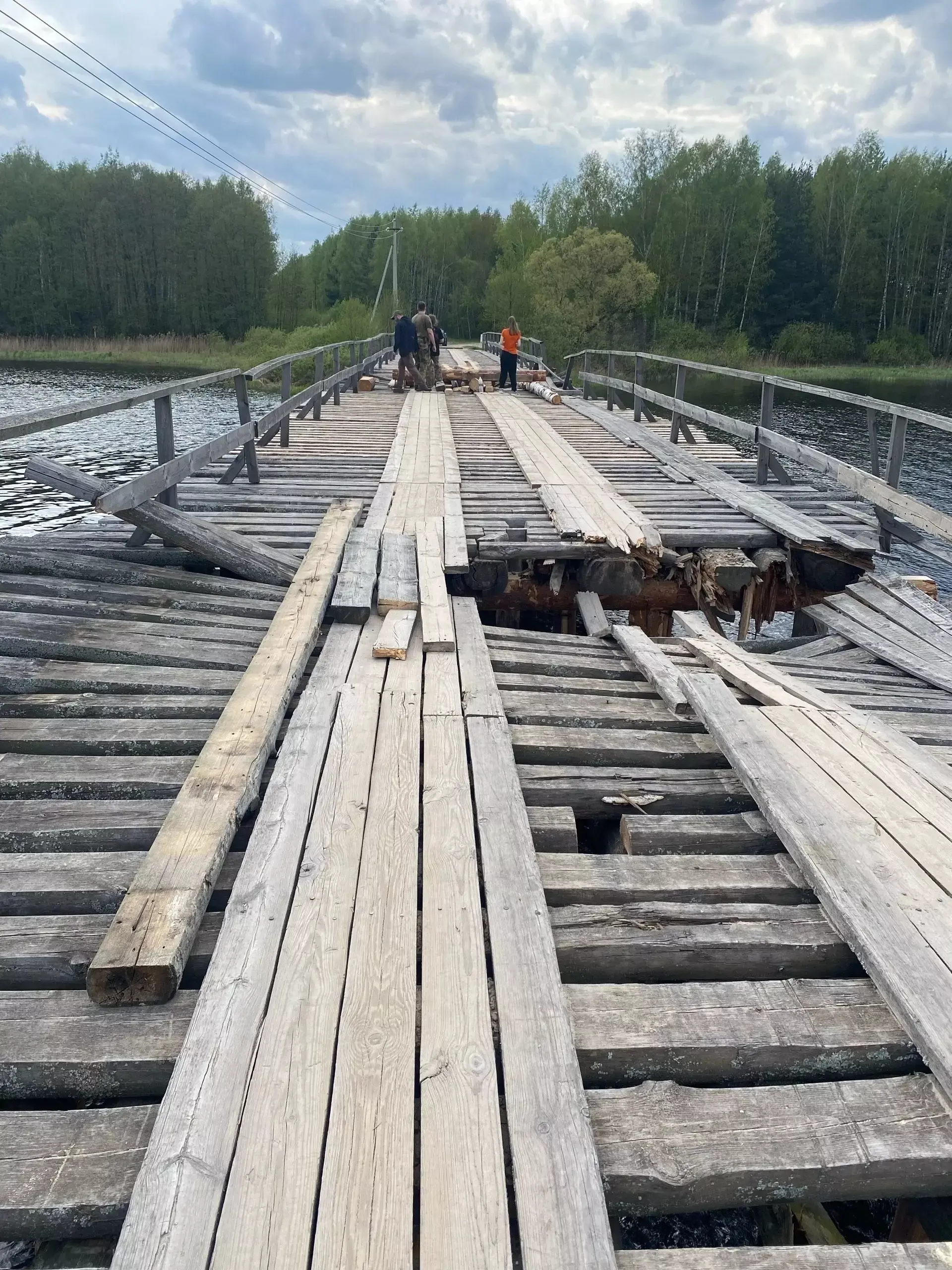 Какие-то долбоящеры-мимокрокодилы, дай им Боги всего плохого, решили срезать путь на Рязань с Егорьевского шоссе через заповедник и наш деревянный мост. Караван из пяти машин с КамАЗом во главе.