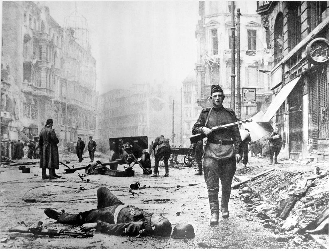 в Берлине на перекрёстке Фридрихштрассе и Ораниенбургерштрассе. 2 мая 1945 года.