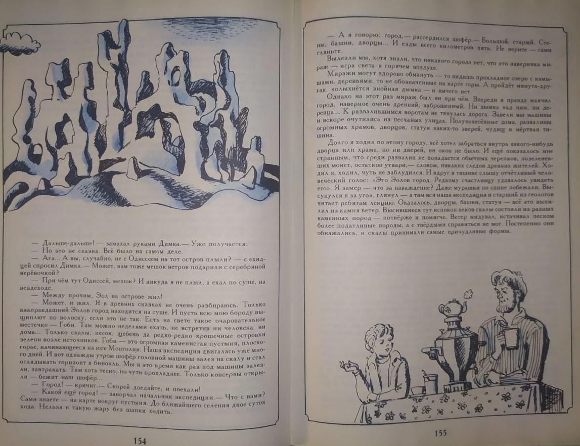 Огромные стрекозы каменноугольного периода и азбука Морзе, мраморные каменоломни и эллинские храмы, роза ветров и крохи палеонтологии прямо под ногами в обычном овраге с ручьём, карьеры с огромными самосвалами и принцип воздушных шаров, притяжение Луны с приливами, пустыни с арфой Эола и пещеры с растущими сталактитами-сталагмитами и… Много чего ещё, сразу, спустя чуть меньше сорока лет, не вспомнишь. Но то и не важно, ведь тут спойлеры-то особо не нужны.