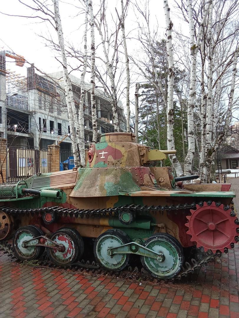 На улице возле музея стоит маленький японский танк. Он смешной, похож на игрушку, но когда-то грозно атаковал русские укрепления.