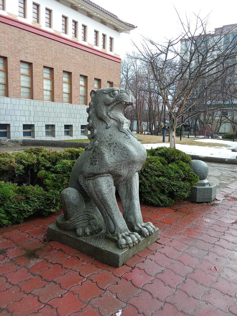 Вход в этот то ли храм, то ли дворец, охраняют собакольвы комаину — родственники окинавской шисы. В "Доминии" Мира бродит по улочкам Окинавы и постоянно встречается с этими каменными зверями, необычно и здорово было обнаружить их на русском острове.