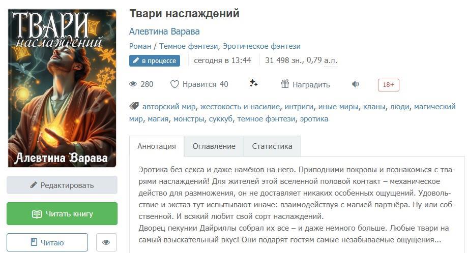 Читать роман "Твари наслаждений" с начала (ссылка)