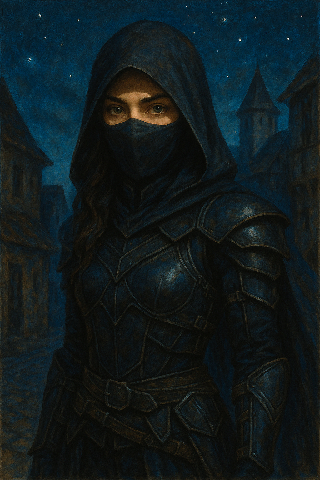 Таинственная девушка-ассасин, появляющаяся в повествовании словно тень. Это её настоящее имя, а внешность скрыта за капюшоном и тканью, оставляющей только глаза — холодные, внимательные, словно тьма, привыкшая смотреть в души. Стратегична, решительна и неуловима. Однако за маской скрывается личность, чья история и связь с главным героем куда глубже, чем кажется.