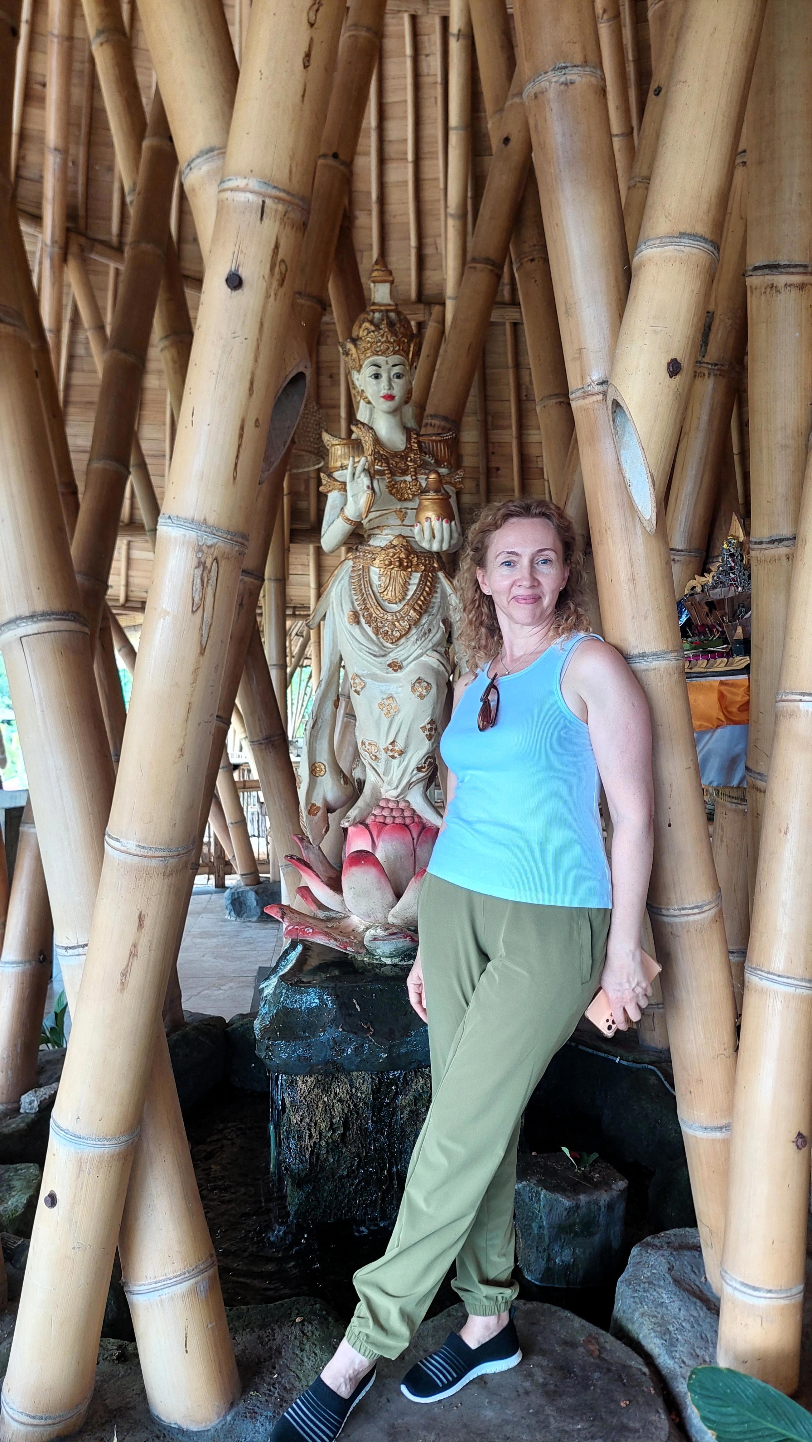 Забрался. Маме Ирме помогла Наташа. Верхняя площадка ресторана просторна, великолепна, почти по центру, убранная в бамбуковую беседку, размещена статуя то ли просто девушки, то ли, что вполне вероятно, какой-нить богини.