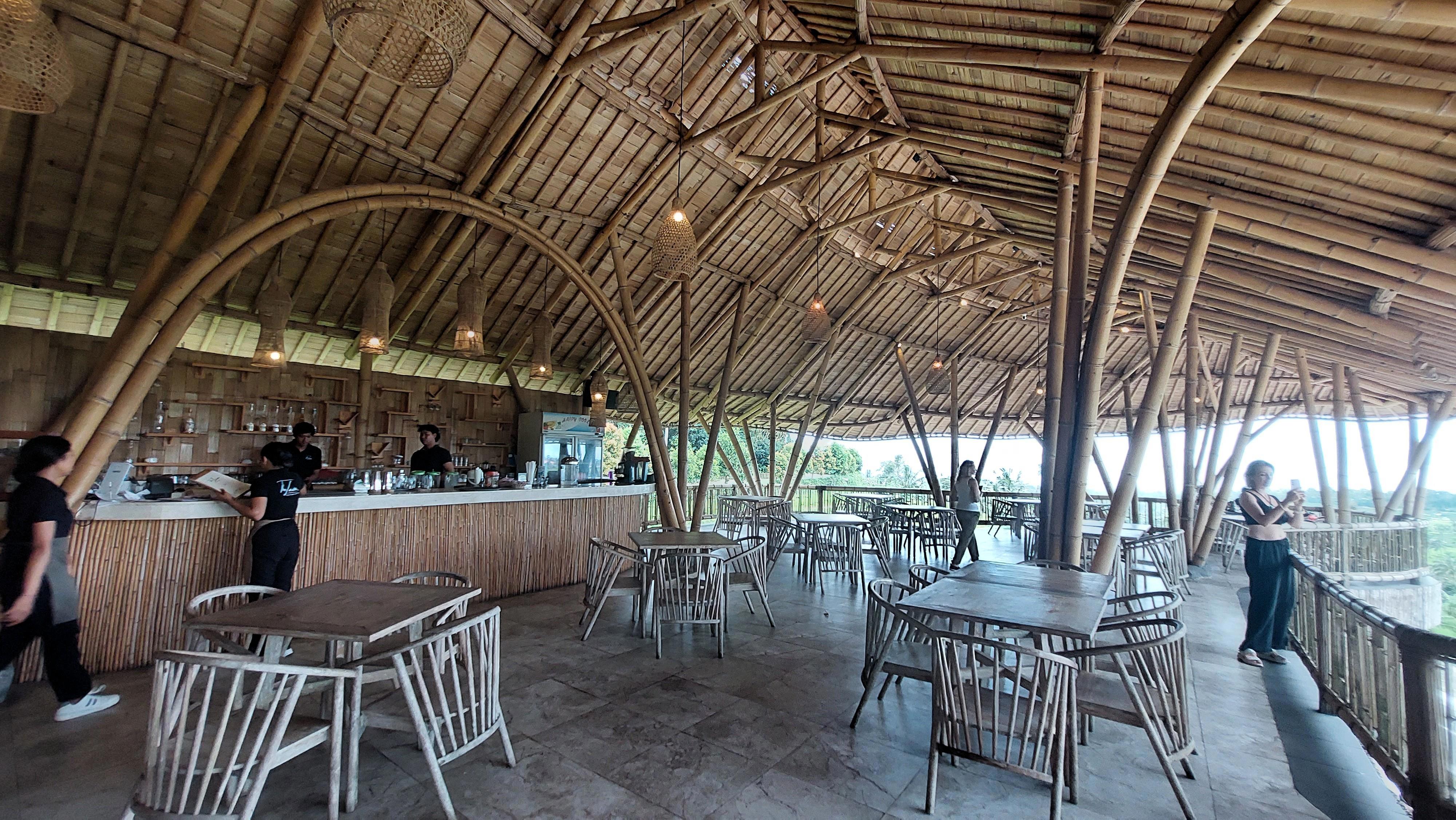 Ну это я нашёл сейчас, когда готовил материал, а на тот момент скользнул взглядом по террасам, ну да, красиво. Где-то вдалеке заметил людей, тянущих резиновые лодки, оказалось готовились к сплаву по каналам. Прикольно. Но, к сожалению, не мой случай, не смогу усесться, слишком низкая посадка. Дети обсуждают, где можно перекусить. Саша сориентировался по Гугл, сдал назад к ресторану «The Lava Resto». Место действительно примечательное, двухуровневое, выполненное из бамбука, ну, по крайней мере, внешнее оформление.