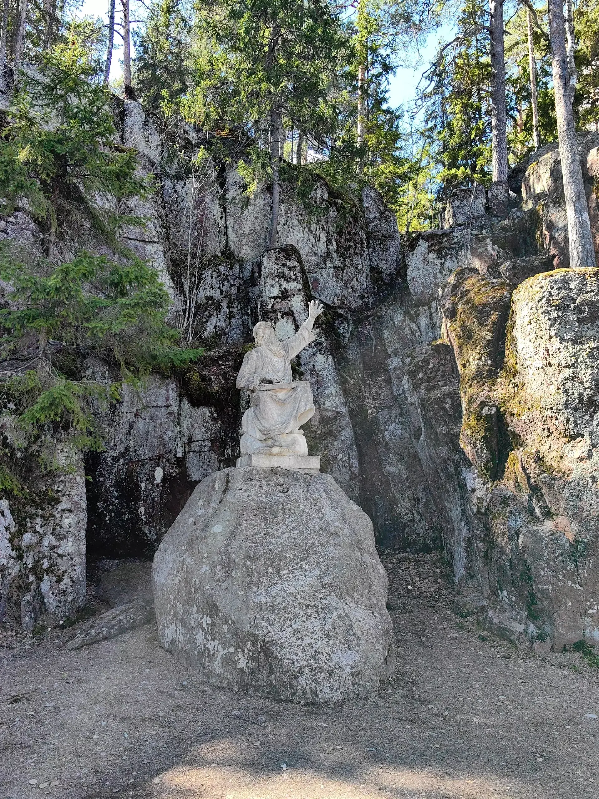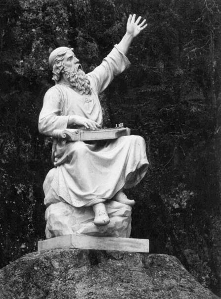 Все, кто бывал в Выборге, наверняка знают парк "Монрепо", именно там была установлена первая скульптура Вяйнямёйнену. Это произошло в 1831 году за четыре года до выхода в свет первого сборника "Калевалы", подготовленного Элиасом Лённротом. Скульптор – датчанин Готтхельф Боруп. Вяйнямёйнен Борупа был выполнен в полный рост, напоминал больше римского поэта, музыкальный инструмент, который он держал в руках скорее был похож на греческую кифару, чем на кантеле. Однако эта скульптура была очень популярной до поры до времени. В 1871 году статую разбили вандалы.