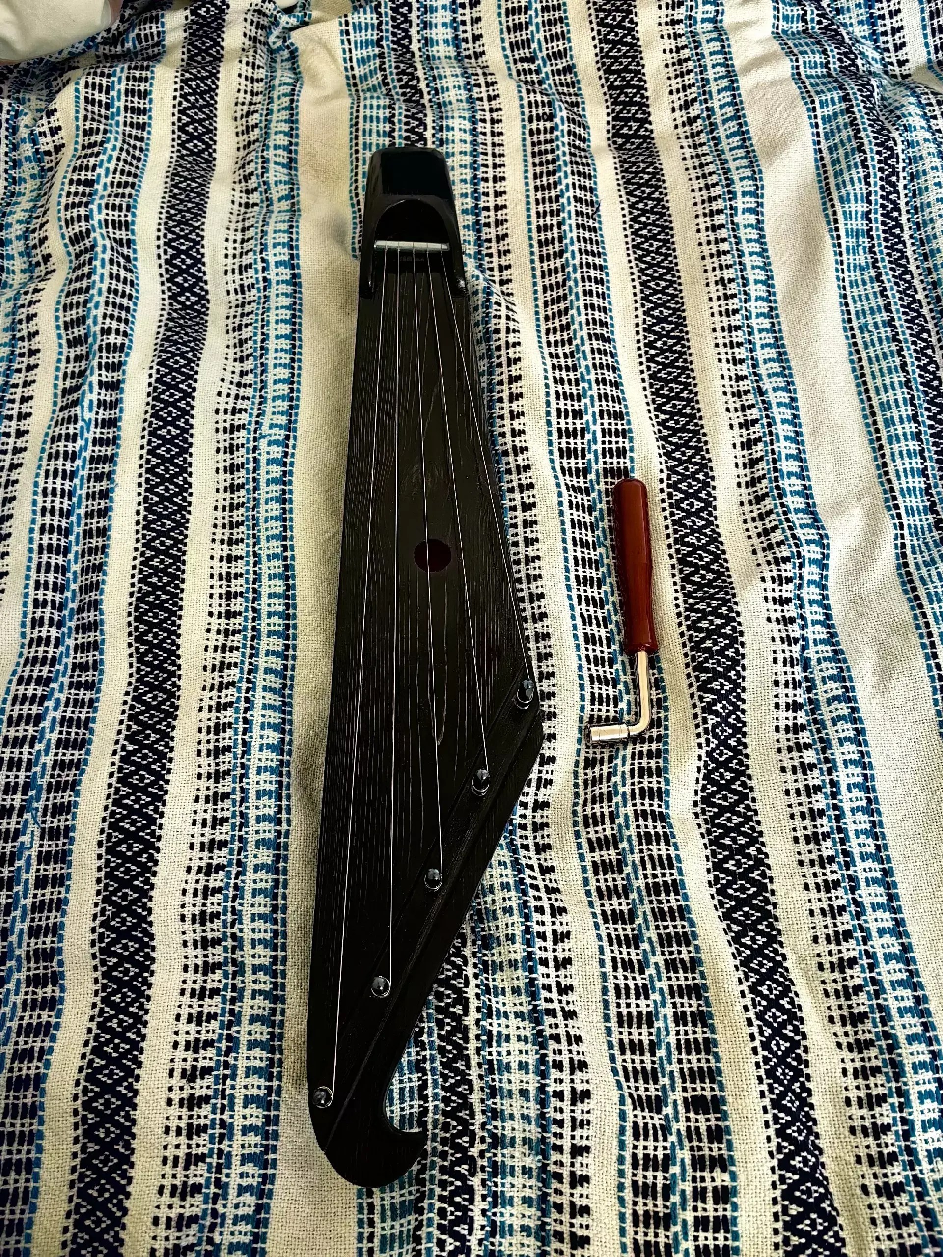 На днях взяла себе новое кантеле, уже мастеровое (до того было мануфактурное от "Мира гуслей"). Моё новое кантеле мне изготовил мой бывший коллега Николай Бируля.