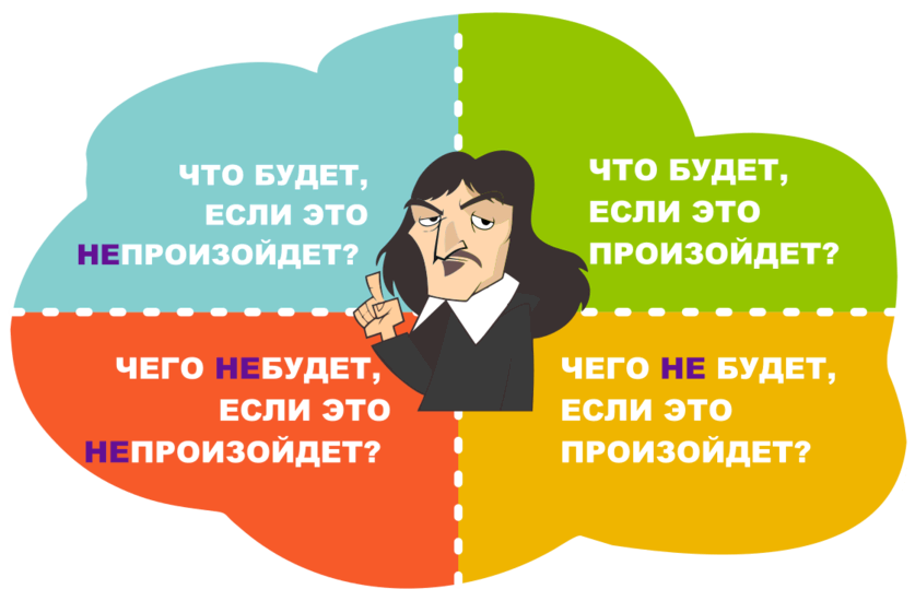 Ещё одна отмычка — наглядность, или выбор среза. Есть куча методик для анализа и принятия решений, которые проясняют нерешаемые с виду завалы. Самый простой пример — квадрат Декарта.