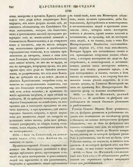 "уже при Елизавете некоторые привилегии фабрикантов подвергаются сокращению. Так, весьма важной привилегией была полная свобода от податей за мастеровых, состоящих при фабрике. Указами 1742, 1743 и 1747 гг. мастеровые, прикрепленные к фабрикам, были обложены подушной податью наравне с прочими крестьянами, но от платы обрачных денег были избавлены. Точно так же в 1754 г. фабричные мастеровые лишились