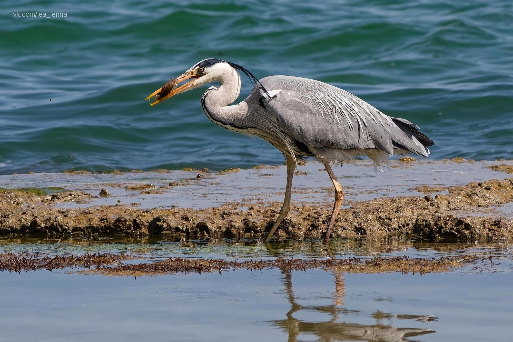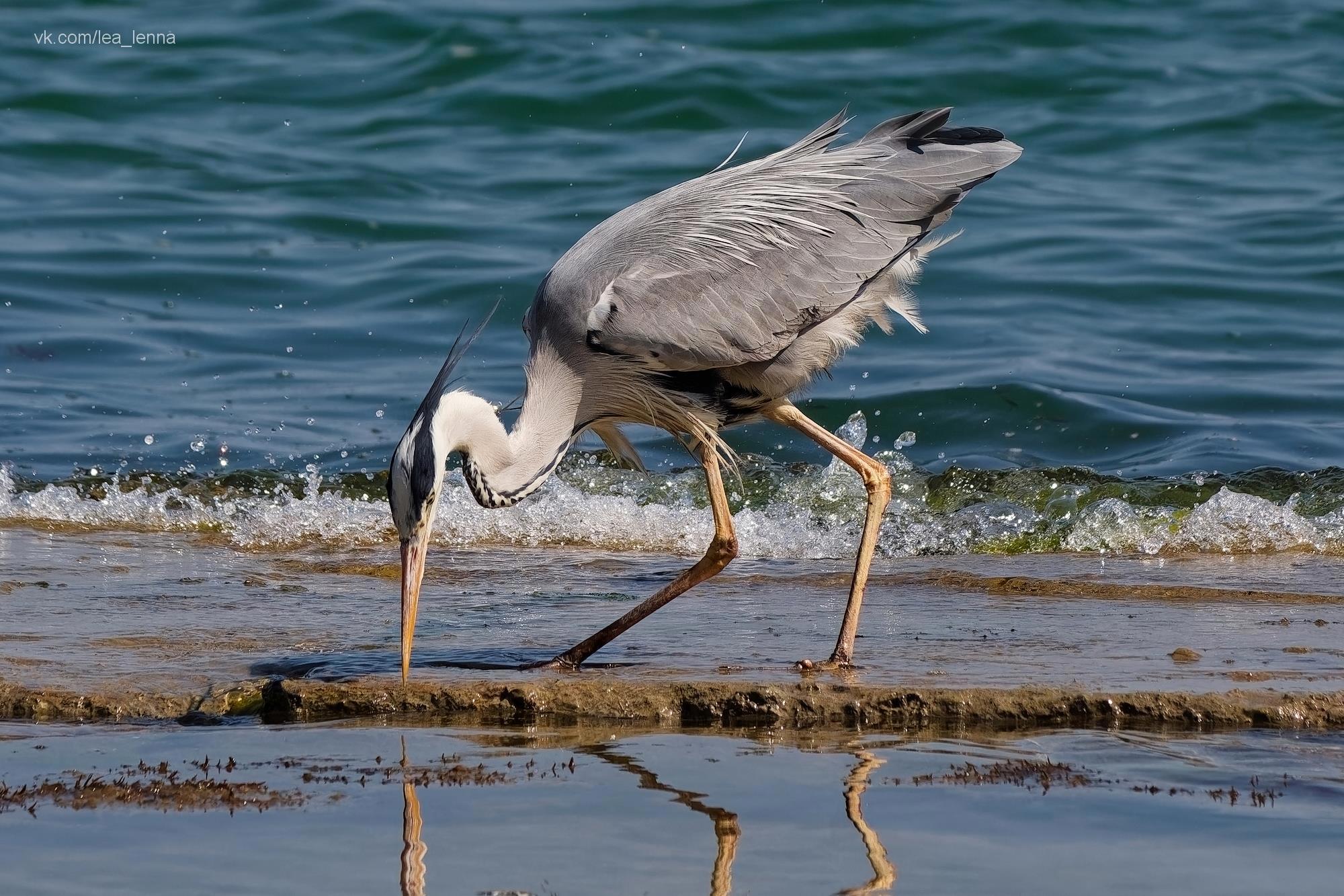 Эту цаплю я уже видела, она постоянно охотится, разгуливая по плитам. В этот раз охота была удачной и для птицы и для меня - дважды сняла бычка в клюве цапли.