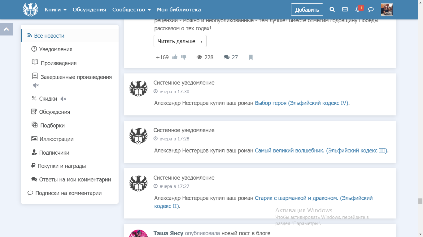 Автор: Юрий МановЧто и говорить, получать такие сообщения приятно. Ваш роман купили. Его оценили, его будут читать. Но вот сразу "трио" я еще не получал. Значит, прочитав "Эльфов средней полосы" читатель понял, что вещь стоящая, стоит брать оптом. И взял. Что ж, спасибо тебе, неизвестный мне Александр Нестерцов, поднял автору настроение.