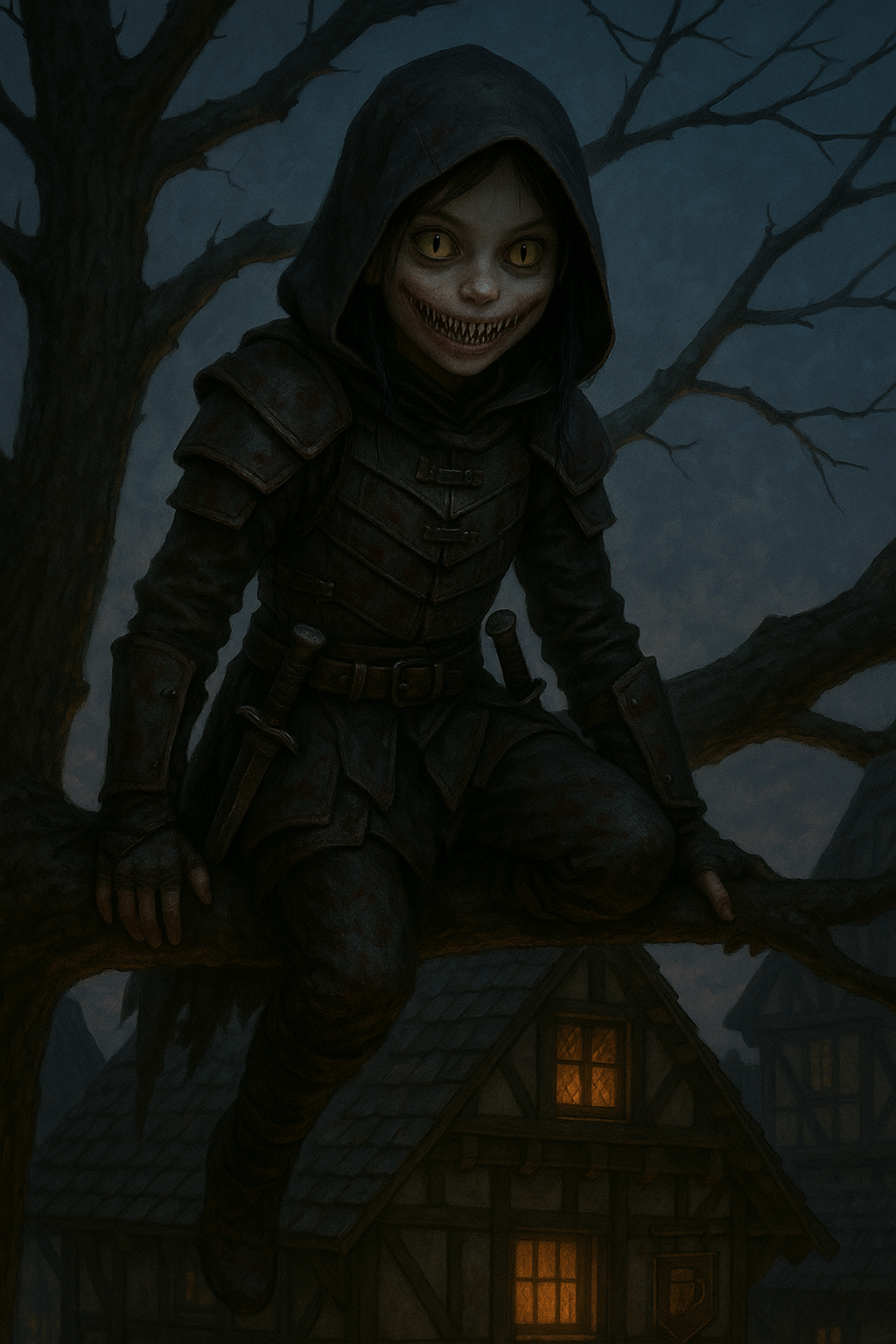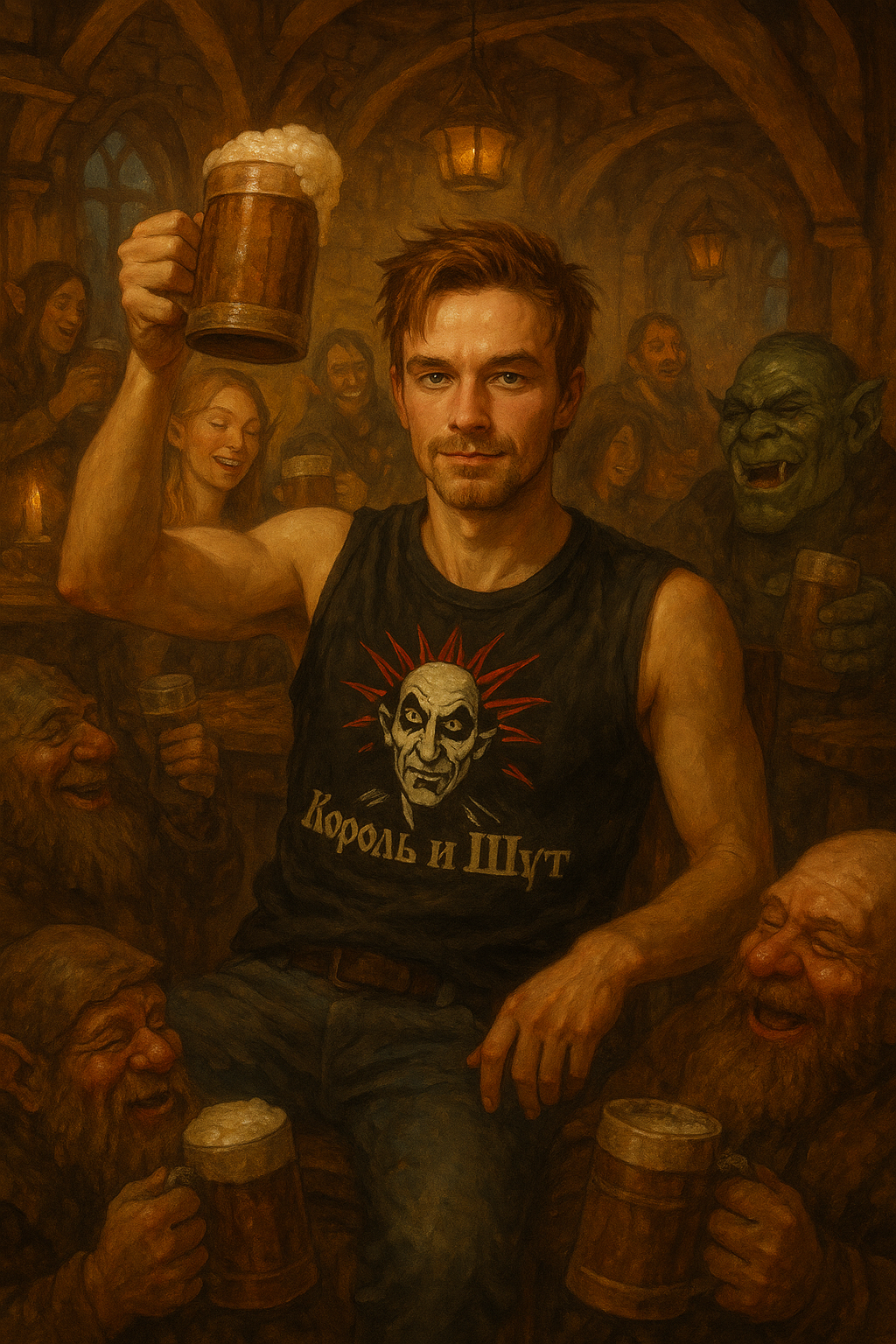 Правда, с Лёхой я чуточку тупанул, забыл описать шипы и лицо. В первом варианте чересчур брутальный получился.))))) А потом бесплатные генерации закончились. И ремень упрямо делает обычный, ну да ладно.