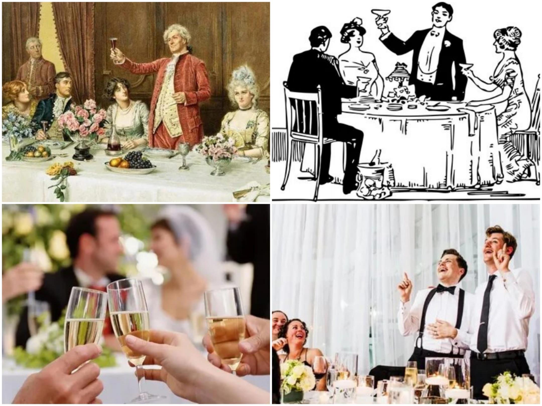 На крупных мероприятиях тосты произносят по очереди, начиная от хозяина дома, тамады или официального распорядителя мероприятия (на свадьбе это обычно свидетель). Пить до дна принято только на самых важных тостах, обращённых к высшему руководству или молодожёнам, либо если это требование было озвучено за столом.