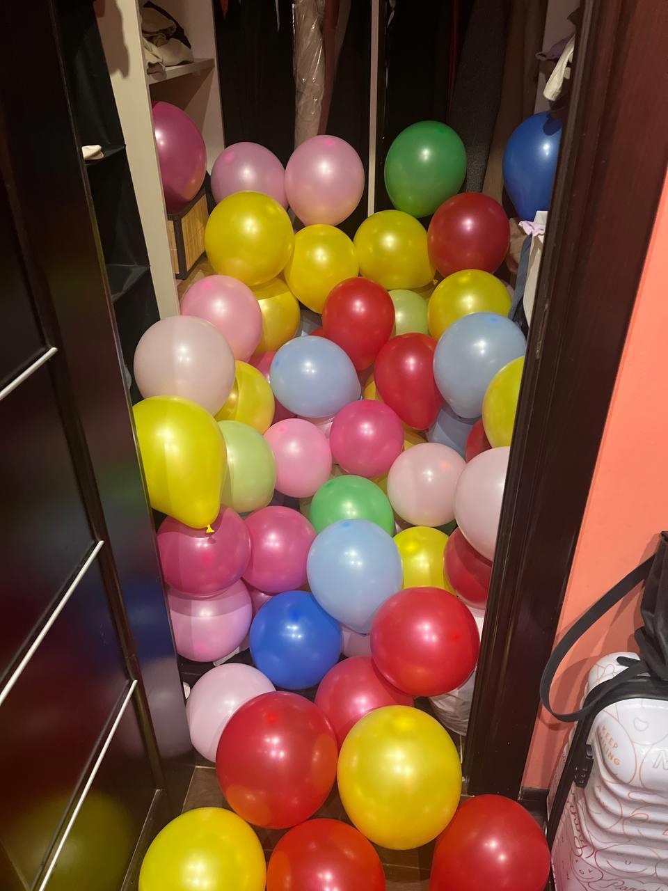 Когда вечером, уставшая, но счастливая, я вернулась домой и открыла гардеробную, на меня вывались 100 воздушных шаров.
