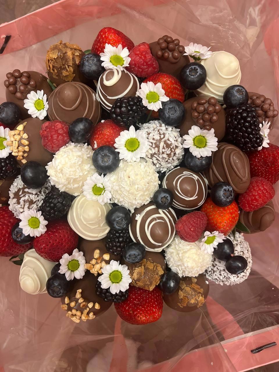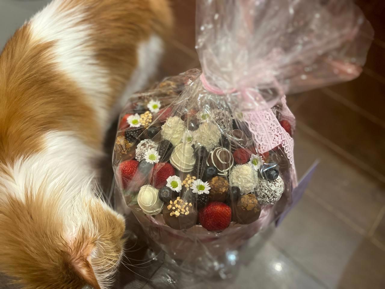 В 12 ночи приехал курьер с огромным букетом клубники в шоколаде.