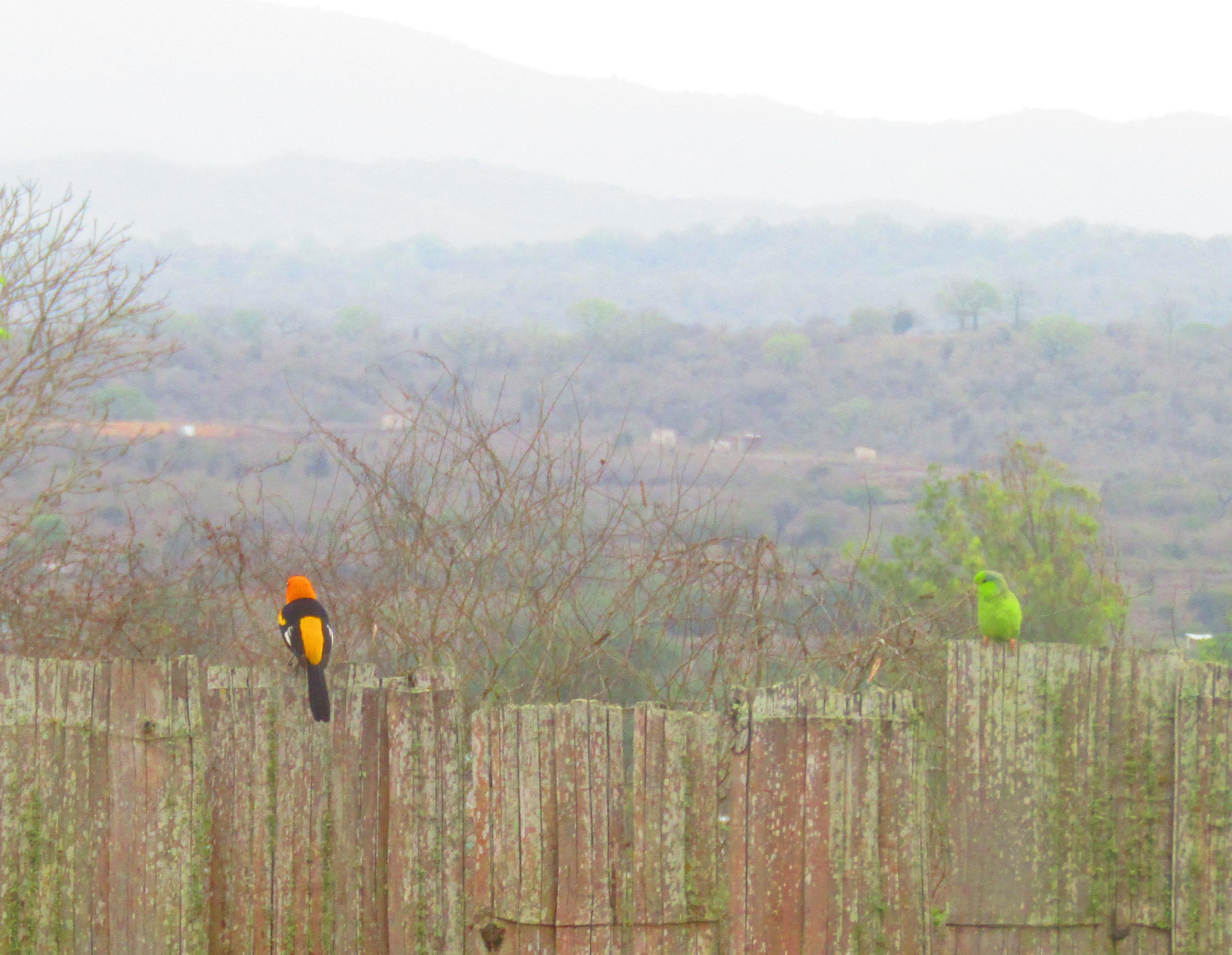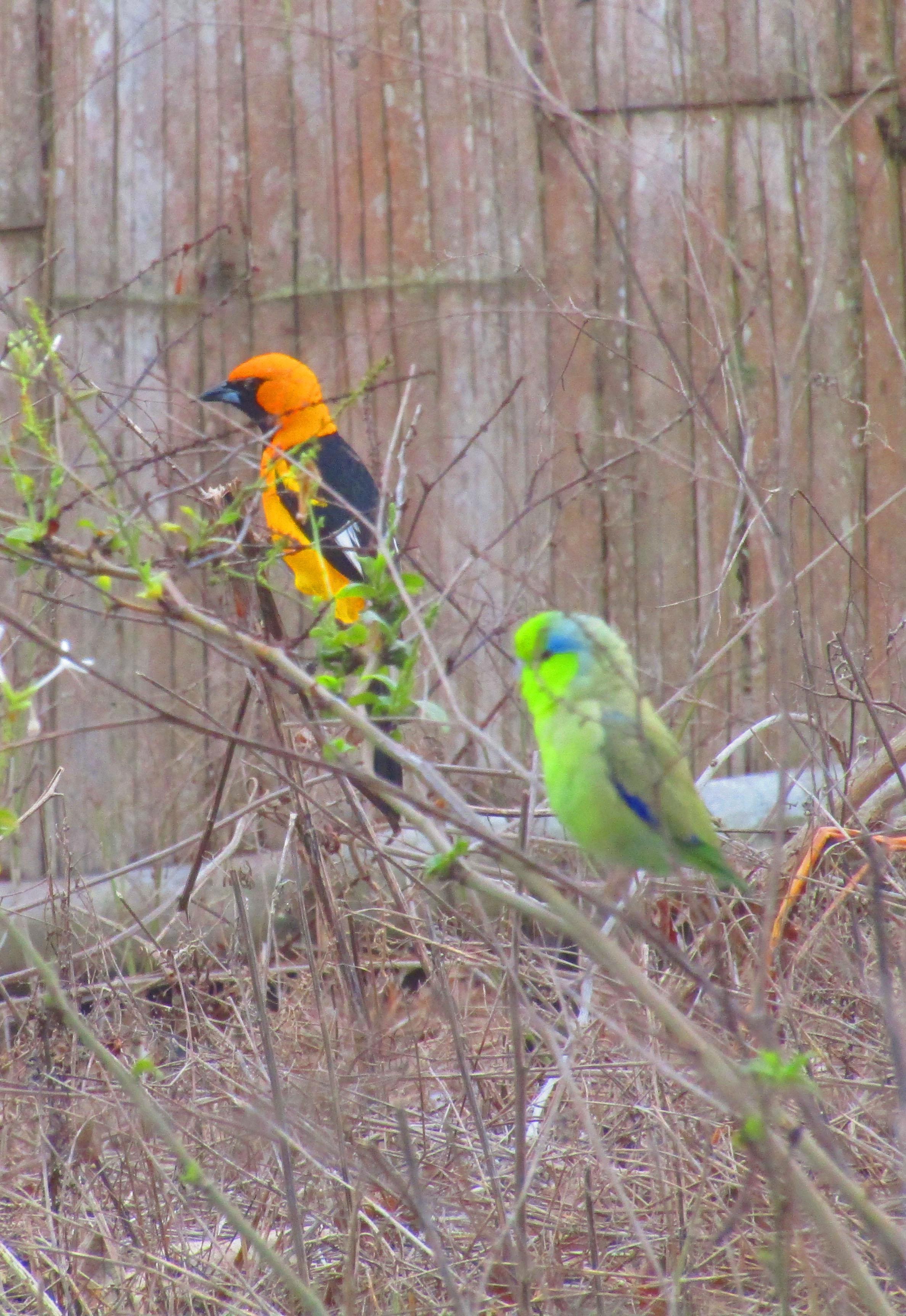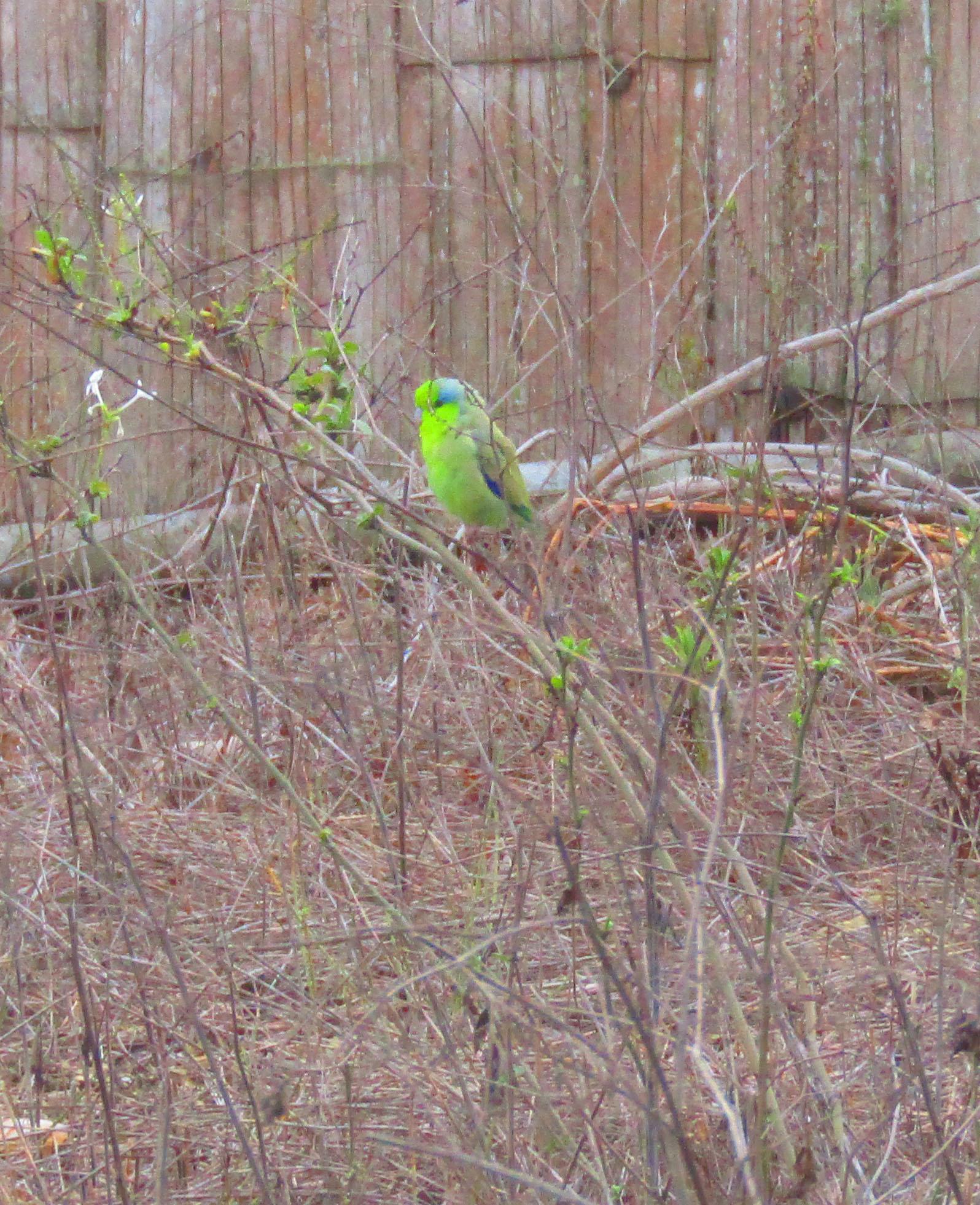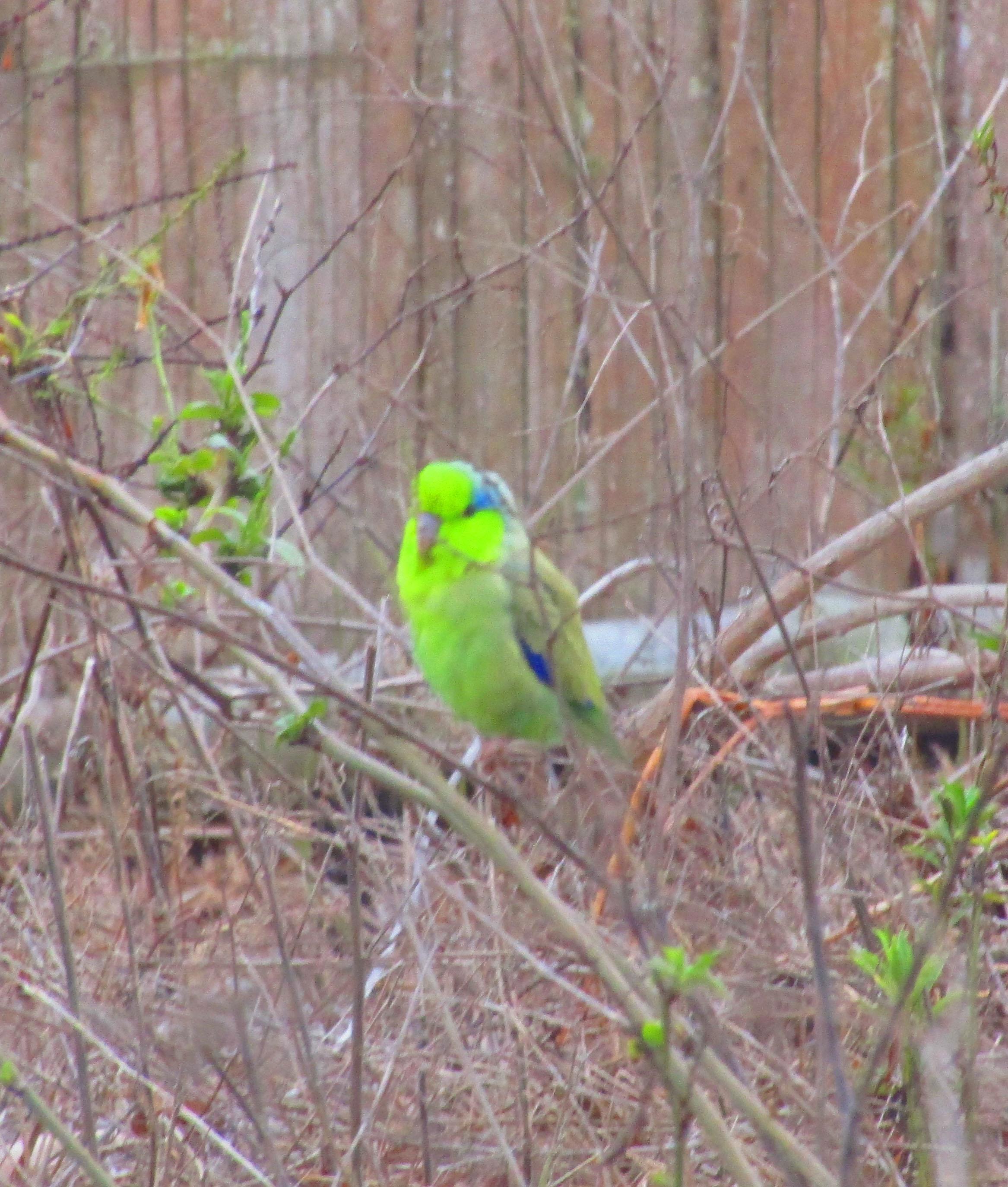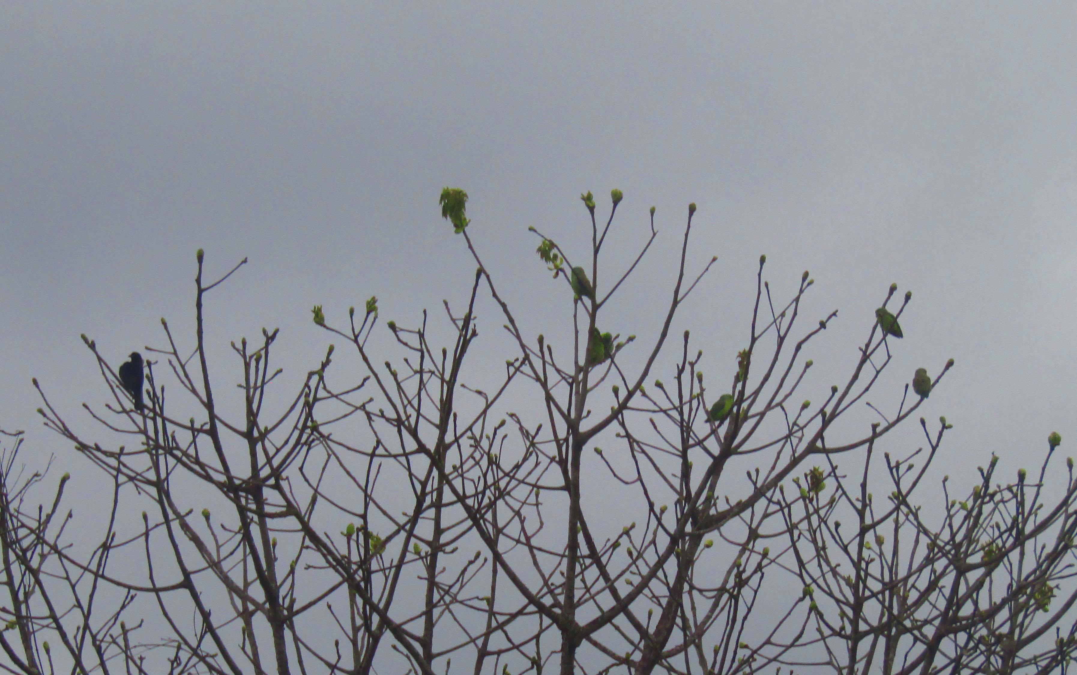 То ли дерево листики дало, то ли попугайковая стая. Беременный голубь слева - вообще неведомая птичка.