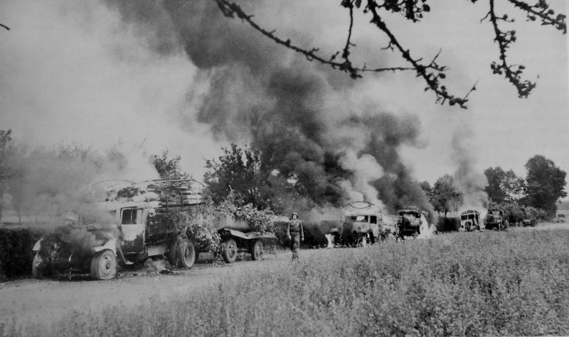 Авиация накрыла колонну на марше. (Снимок американский, наши не попались, но горящая колонна выглядит одинаково).