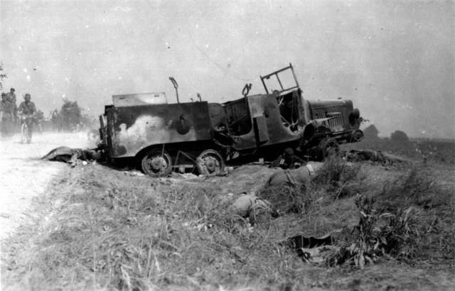 Подрыв на фугасе немецкого полугусеничного тягача.