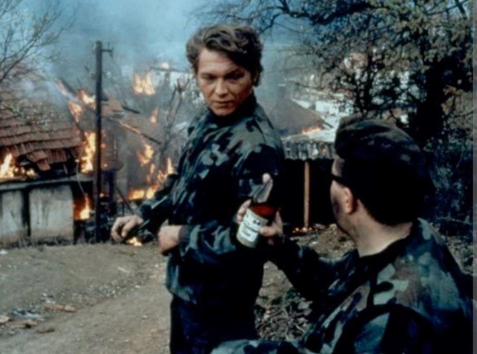 4. "КРАСИВЫЕ ДЕРЕВНИ КРАСИВО ГОРЯТ" (1996) Когда-то они вместе играли в одной песочнице, мамы их ходили друг к другу в гости, отцы разделяли праздники и несчастья. А теперь они злейшие враги, один зажат в тоннеле, другой его держит под контролем. Два часа пугающих шуток, кровавых прибауток, горящих сёл и игр со смертью. Перед нами война в Югославии.